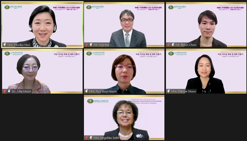 11월 9일 ‘여성 리더십 화해 및 평화 만들기’ 한·일·미 GWPN 웨비나가 전 세계 15개국의 여성지도자 620여명이 참석한 가운데 온라인으로 개최되었습니다. 금번 웨비나는 ‘통일한국: 도전과제를 넘어서’라는 부주제를 가지고 세계평화여성연합 한국, 일본, 미국의 공동주최로 진행되었습니다. 자세한 내용은 홈페이지 또는 유튜브에서 확인해 보세요. |