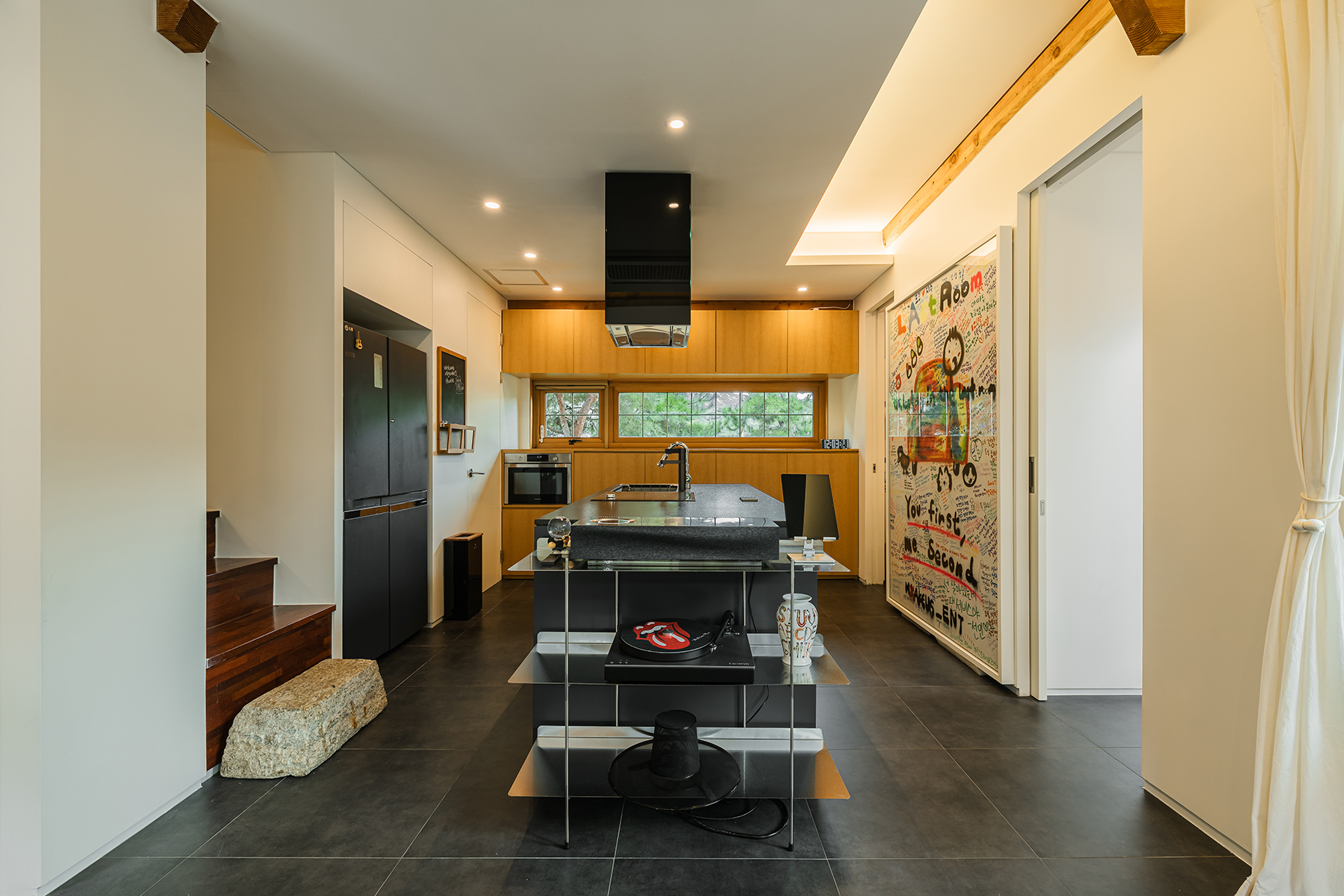 마지막으로 가수 박원을 비롯한 많은 아티스트들에게 영감을 준 요소는 음악인 것 같습니다. 1, 2층의 네임 스피커와 안방의 뱅앤올룹슨 사운드바, 피아노 연주 공간까지 마련되어 소리가 주는 즐거움을 누릴 수 있어요. 박원님이 가장 신경을 많이 쓴 부분이기도 합니다.