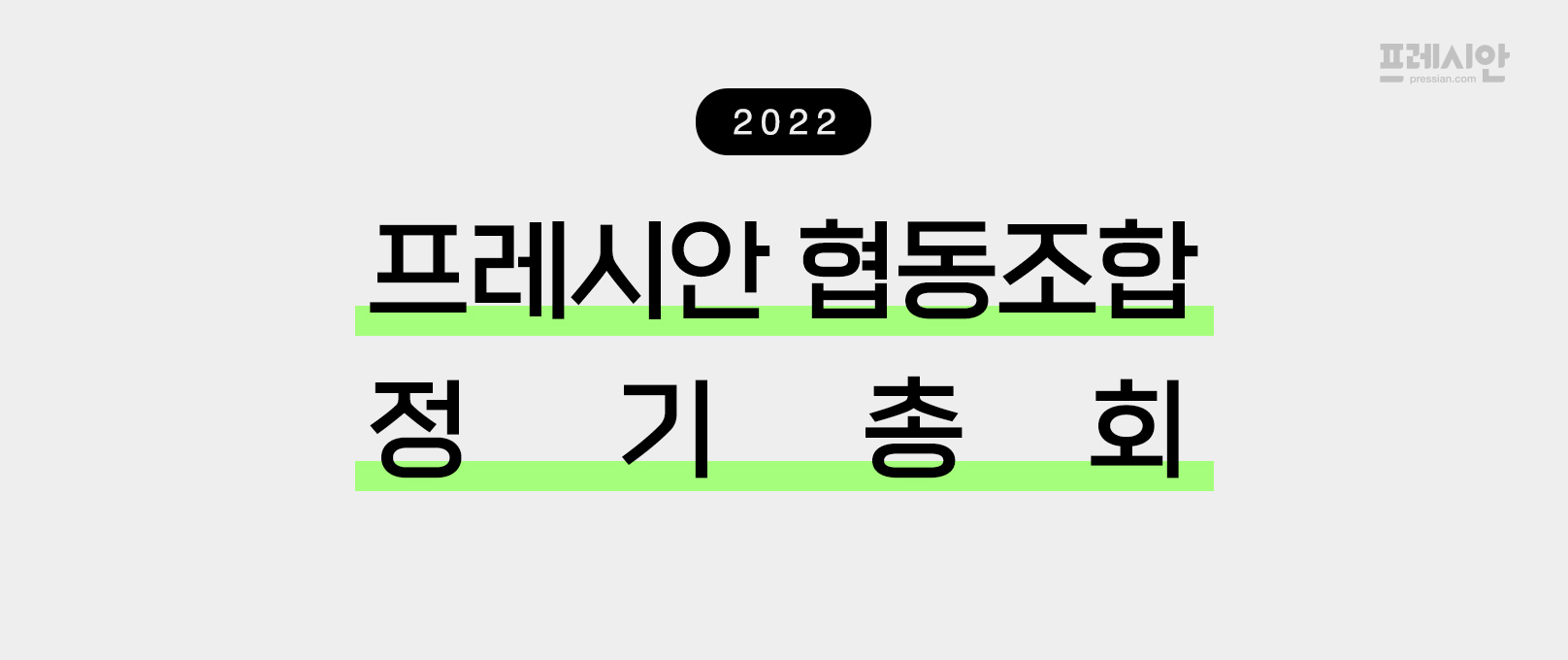 총회는 프레시안 협동조합의 지난 한 해를 돌아보고, 올 한 해의 사업을 계획하는 우리 조합의 가장 중요한 행사입니다. 올해는 3월 5일 개최 예정인데요. 기획재정부는 2020년 코로나19 심각 단계임을 고려하여 추후 재공고가 있을 때까지 일부 사항에 대한 협동조합 '서면총회'를 허용함을 공고한 바 있어요. 코로나19의 상황이 오미크론 변이 확산으로 인해 여전히 심각함에 따라 프레시안 협동조합의 2022년 총회 또한 서면 총회로 개최해야 할 것으로 보입니다. 이에 따른 사전 절차로 지난주 대의원 여러분을 대상으로 서면총회 개최 여부에 대한 의견수렴 설문을 진행했습니다. 이 결과에 따라 2월 23일 개최하는 이사회에서 결정할 예정입니다. 추후 공지해드리겠습니다.