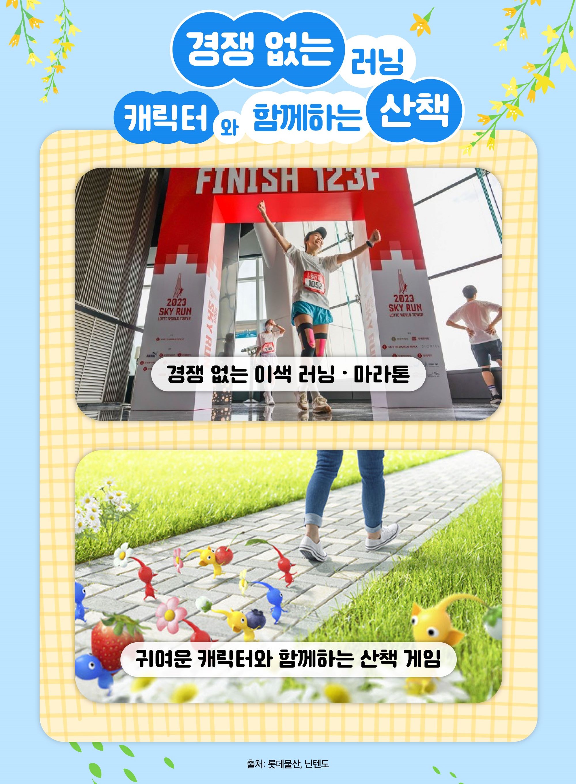 JOMO 트렌드는 경쟁과 효율을 중시하던 기존 라이프스타일과 다른 방식으로 확산되고 있습니다. 롯데월드타워 스카이런은 기록 경쟁 대신 '나만의 페이스로 오르기'라는 메시지를 강조하며 참가자들에게 색다른 만족감을 제공합니다. 누군가와 비교하거나 이길 필요 없이, 123층을 천천히 오르며 스스로 목표를 세우고 도전할 수 있습니다. 한편, 닌텐도 산책 게임 '피크민 블룸'은 스마트폰 속 피크민 캐릭터와 함께 걷고, 꽃을 심고 하루 걸음을 시각적으로 기록하며 신체적 건강과 정신적 건강을 함께 챙기는 취미로 주목받고 있습니다.