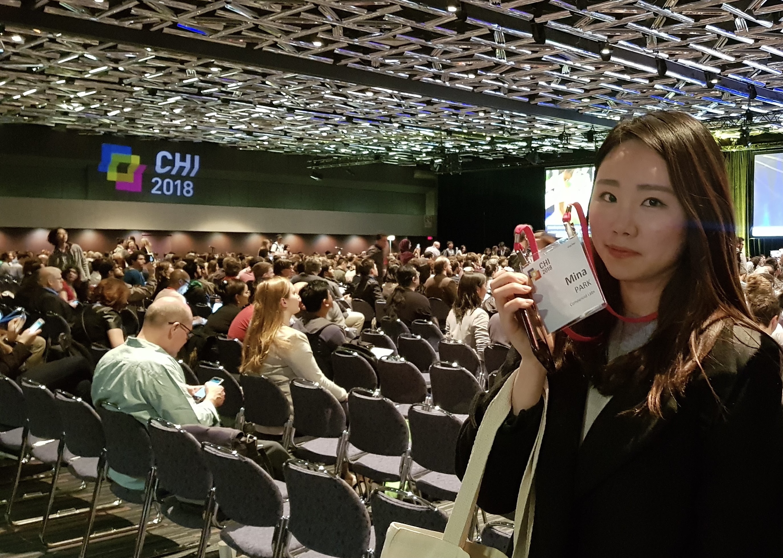 ์์ผ๋ฅผ ํ์ฅํด ์ค CHI2018. CHI2018์ ๊ฐ์ด ๊ฐ๋ ๋น์ ์ฐ๊ตฌ ์ธํด ์น๊ตฌ๋ค๊ณผ ์ฅ์ง๊ท ์์ฅ๋. ![]() ์ปจํผ๋ฐ์ค ํ์ฌ์ฅ์์ ๋ํ