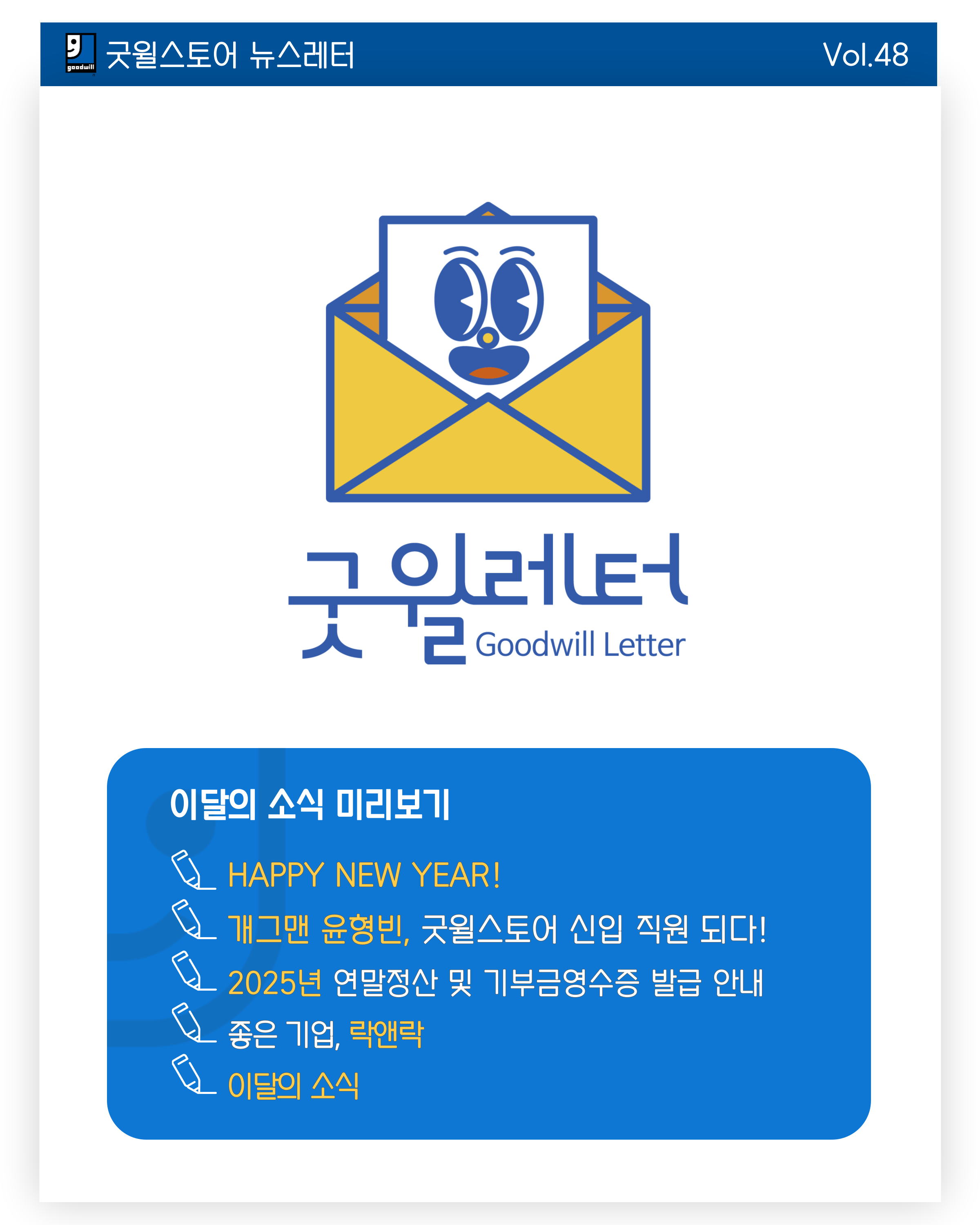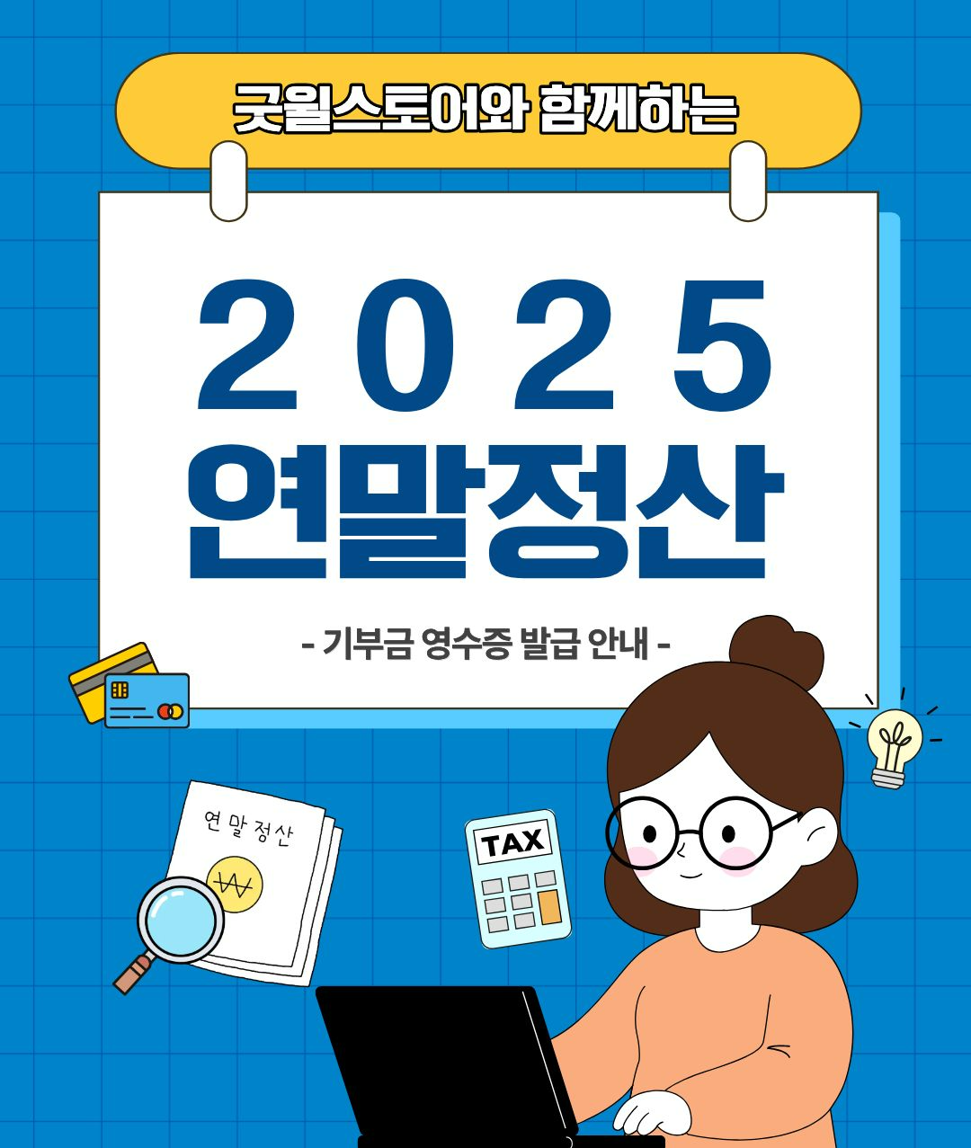 2025년 굿윌스토어에 기증하신 물품은 연말정산 시 기부금 세액공제를 받을 수 있습니다. 기부금영수증 발급 방법부터 공제 기준, 필요 서류까지 연말정산에 필요한 정보를 한눈에 확인해보세요👇 |