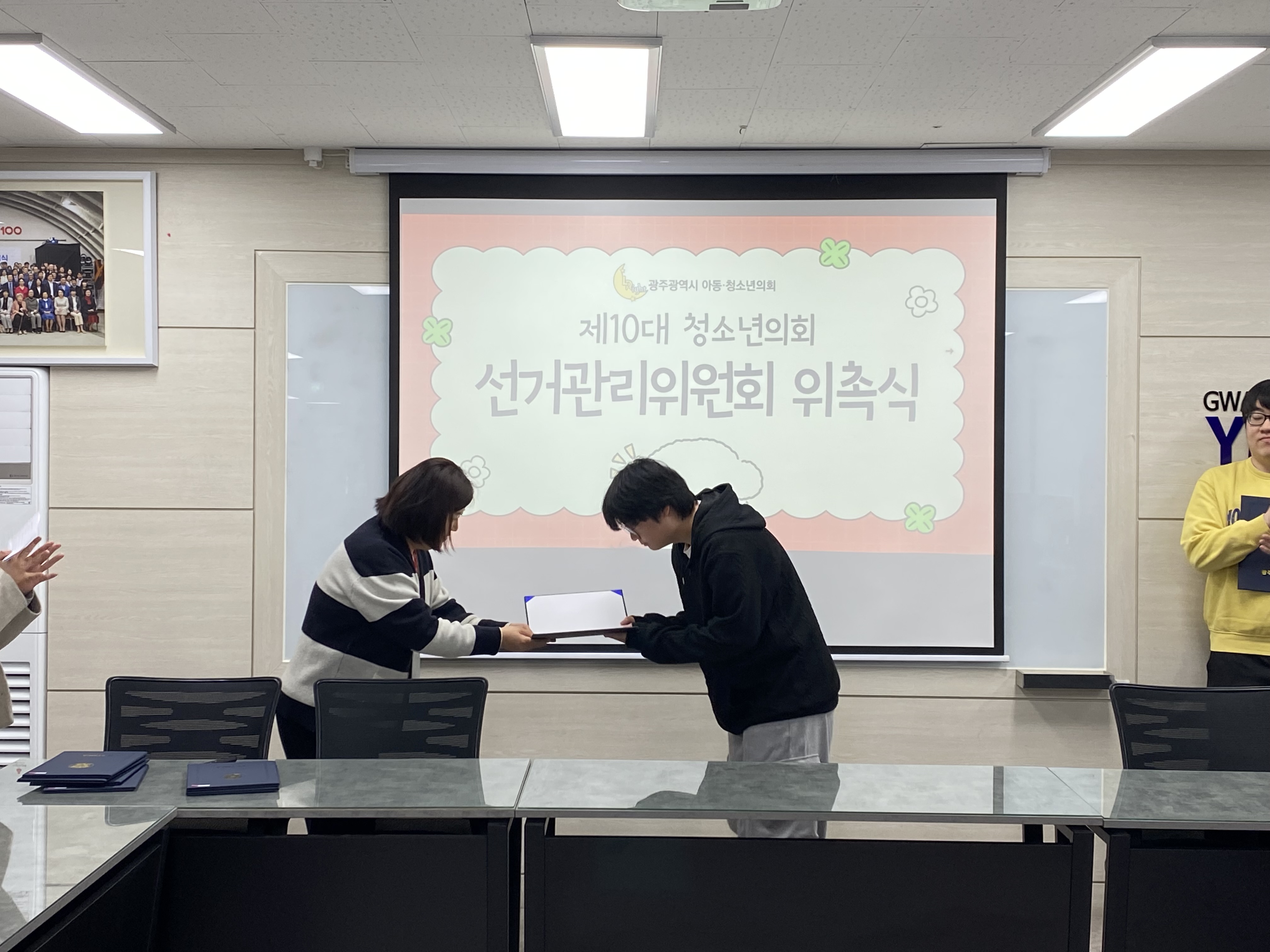 위촉식을 마친 뒤 열린 1차 정례회의에서는 광주광역시아동·청소년의회 소개 및 선거관리위원회 연간 일정 보고를 시작으로 위원장 및 부위원장 선출, 2차 정례회의 일정 논의까지 진행되었습니다.