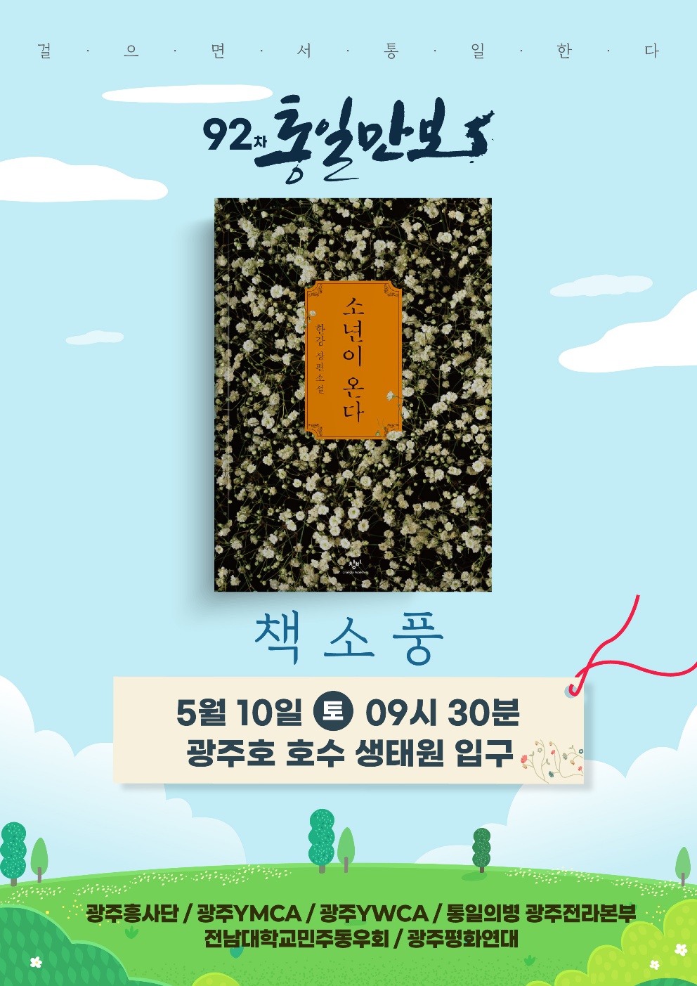 5월 통일만보는 통일의병이 주관하여 광주호 호수 생태원에서 진행됩니다~ ‘소년이 온다’ 책과 함께하는 ‘책 소풍’으로 함께하오니, 많은 관심과 참여 부탁드립니다^^!