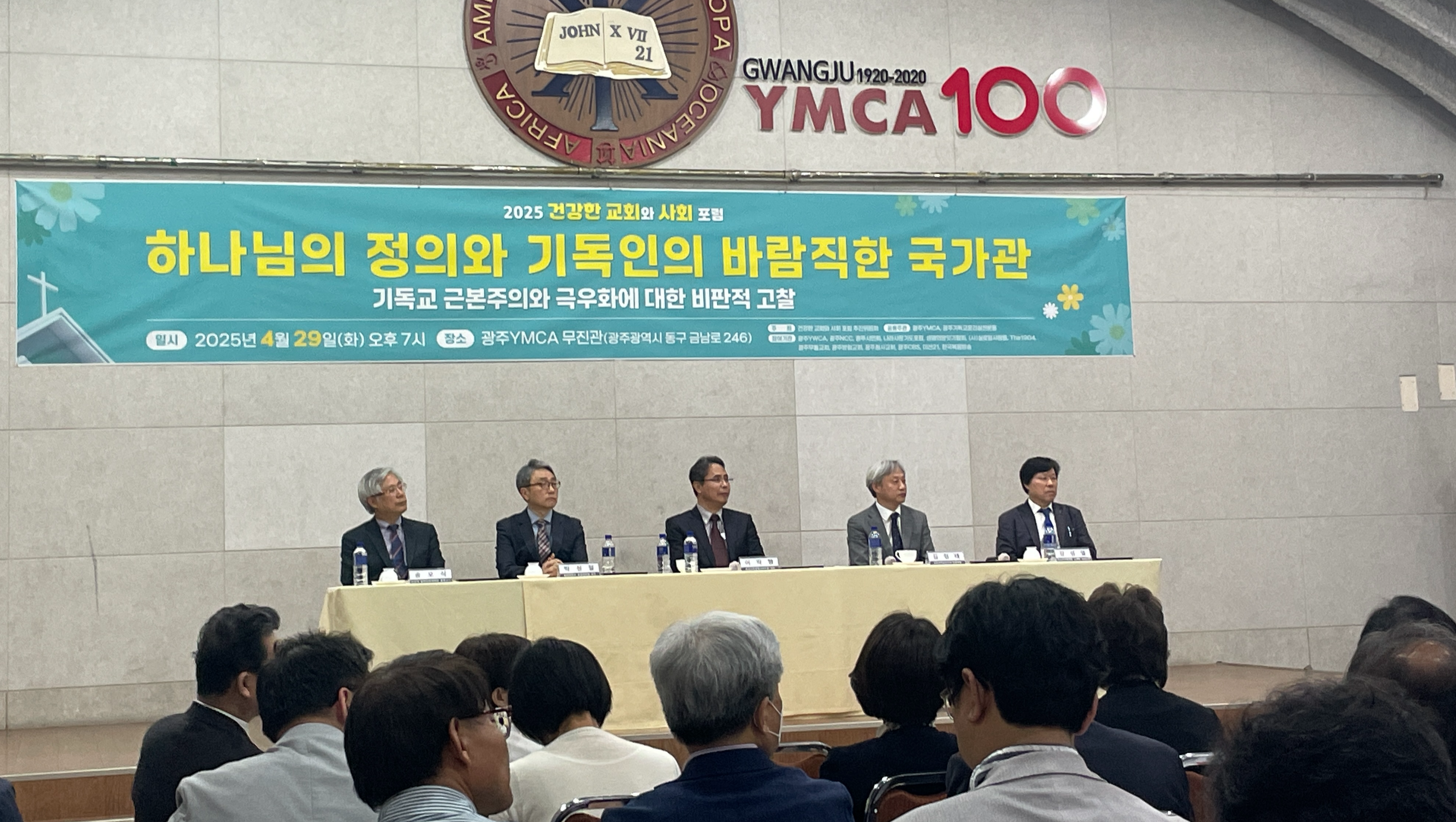 지난 4월 29일 화요일 오후 7시, 광주YMCA 무진관에서 ‘하나님의 정의와 기독인의 바람직한 국가관(부제:기독교 근본주의와 극우화에 대한 비판적 고찰)’을 주제로 '2025 건강한 교회와 사회 포럼'을 개최하였습니다.