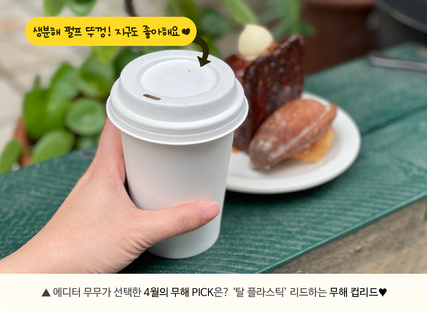 오늘 에디터 무무가 구독자님에게 특별하게 추천해 드리는 무해 펄프몰드 컵리드는 일반적으로 쓰이던 플라스틱 소재(폴리프로필렌, 폴리스티렌 등)를 천연 생분해 소재 '펄프몰드'로 대체한 컵리드예요. |