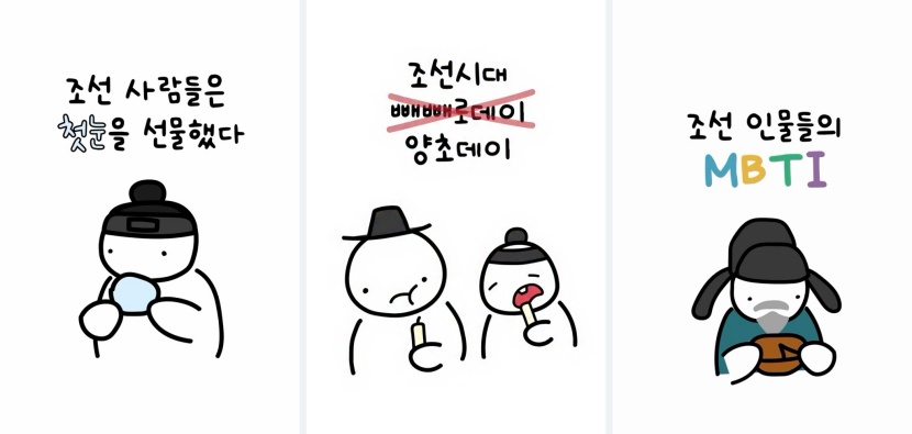귀엽고 유익한 인스타툰을 찾았어. 콜치 (@kor_chii)라는 계정인데, 한반도에 서식하는 해치가 한국사의 잡지식을 알려준다는 콘셉트야. 역사라고 하니까 무겁고 어려운 걸 떠올릴 수도 있지만, 콜치는 주로 귀여운 역사를 알려줘. '조선 사람들은 첫눈을 선물했다', '조선시대에는 양초데이가 있었다', '조선인들은 빵처럼 구워지는 걸 좋아한다' 등. 유익하기도 한데, 눈사람을 닮은 캐릭터가 귀여워서 피드에 뜨면 반갑더라고. 참고로 세종대왕의 MBTI는 나와 같은 INTJ로 추측된다고... |