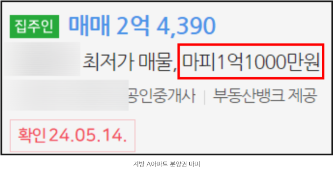 분양가가 3억대인데, 마피가 1.1억입니다 |