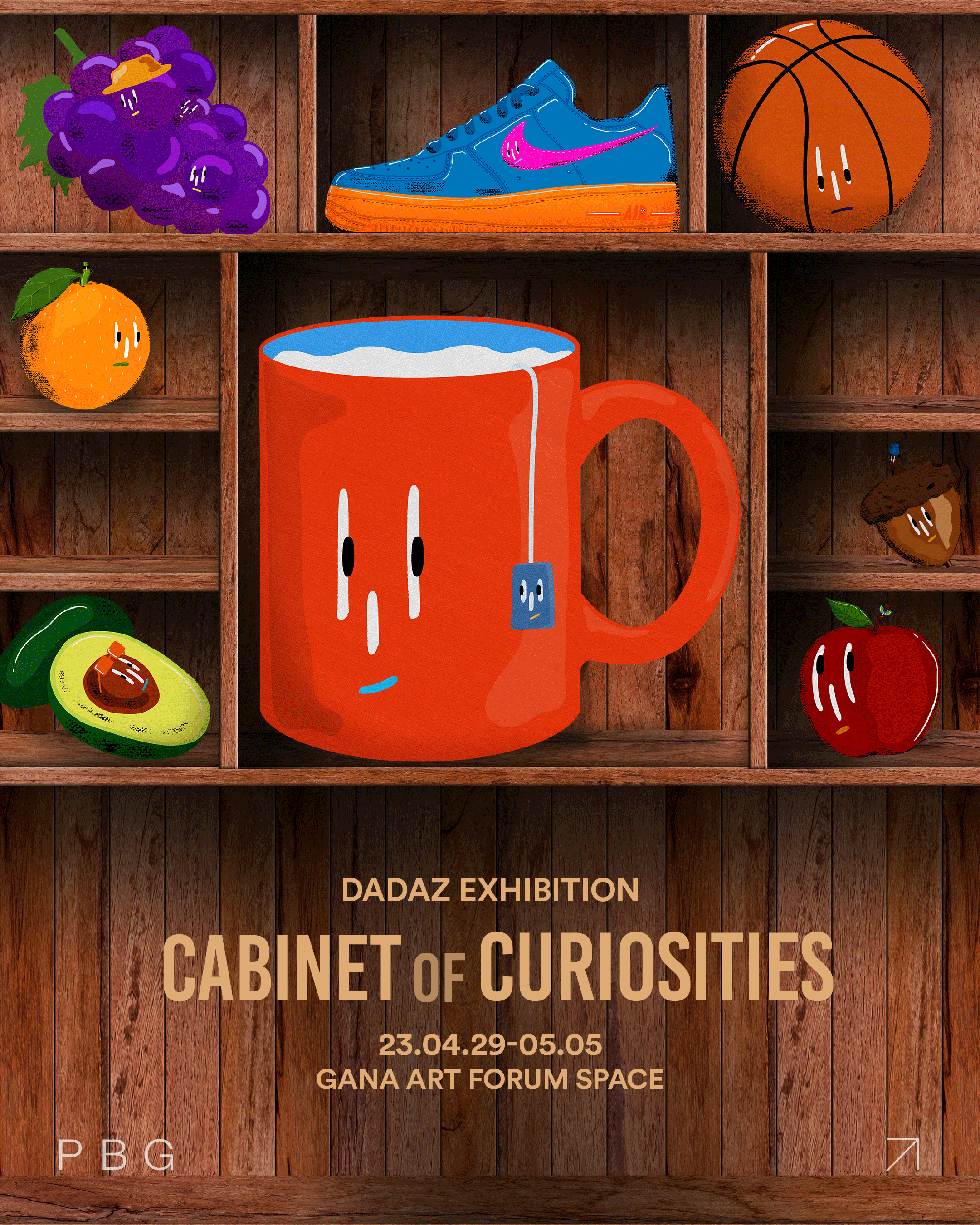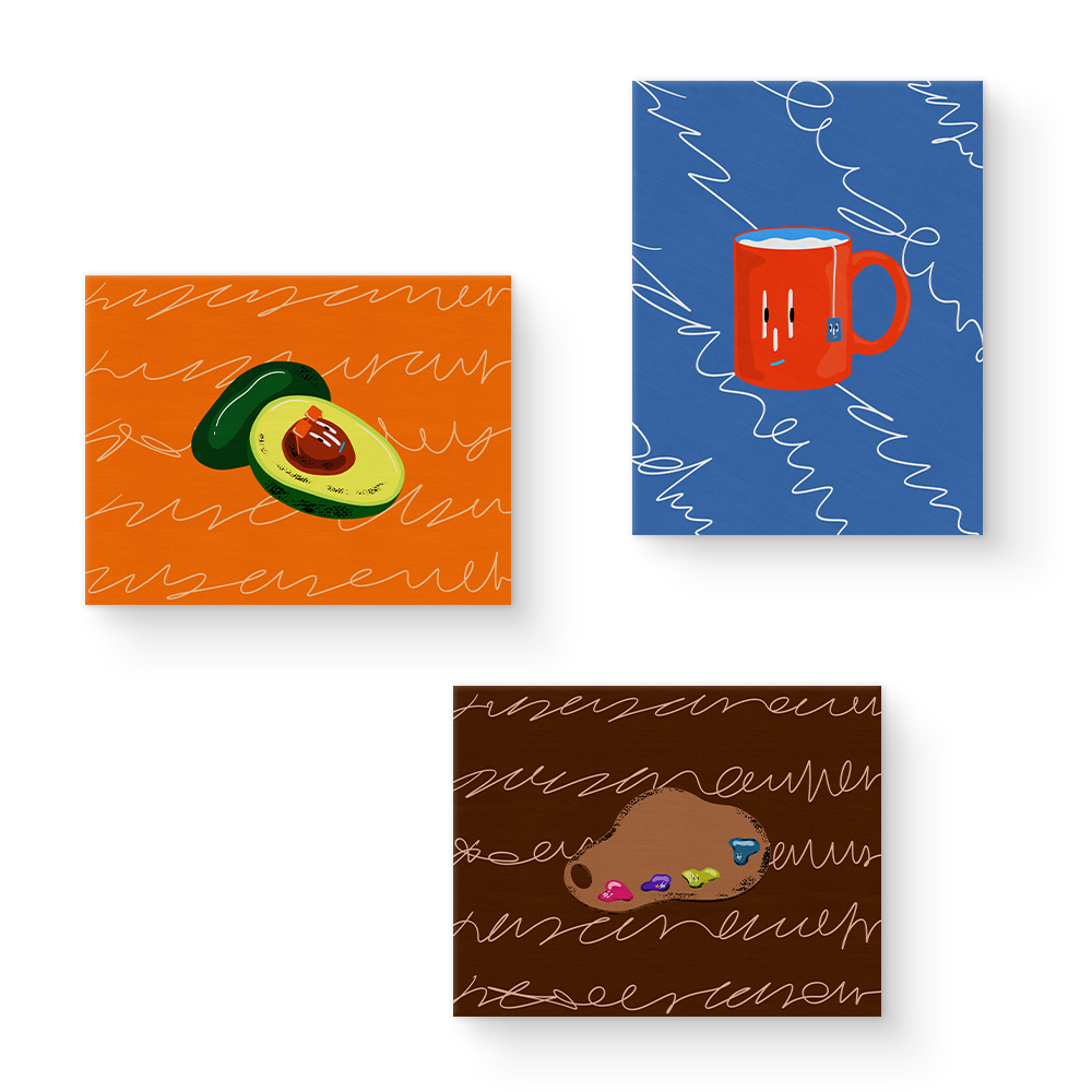작품 배경 전반에 그려진 구불구불한 라인은 작가가 작품을 마주하는 이들에게 보내는 행복하고 좋은 일들이 생기길 바라는 메시지입니다. <Cabinet of Curiosities>에 방문하시는 모든 여러분들이 작품으로부터 긍정적인 에너지를 채워 가시길 바랍니다. |