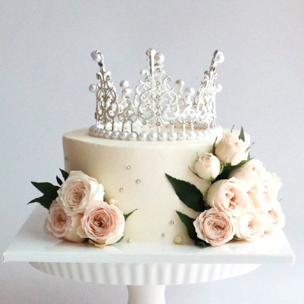 진짜 티아라가 올려진 티아라 케이크! 영롱하게 반짝이는 왕관에 싱싱한 생화가 오늘의 주인공을 더욱 빛내줄 거예요. (ⓒ도로시 작가님)