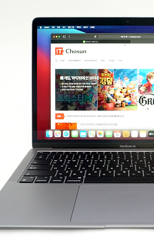 ‘맥 입문자’ 강추…M1칩 탑재 신형 애플 맥북 에어 애플의 맥북(MacBook) 제품군은 단순한 ‘노트북’이 아니다. 멋 좀 아는 사람이 자주 챙기는, IT 제품이면서도 대표적인 스타일리시 아이템으로 꼽힌다. 한편으로, 맥북은 사진 및 이미지, 영상, 음향 관련 전문가들이 즐겨 쓰는 노트북이기도 하다. 애플은 지난해 11월, 인텔 대신 자체 개발한 ‘애플실리콘 M1’ 칩을 탑재한 차세대 맥 라인업을 선보였다. 무려 10여년만의 CPU 교체다. 입문형 맥으로 꼽히던 맥북 에어(MacBook Air)도 그 대상 중 하나다. 애플 특유의 미니멀리즘 디자인 ![]() M1 칩을 탑재한 새로운 맥북 에어의 외형은 기존 인텔 CPU를 탑재한 제품과 큰 차이는 없다. 매끈하고 완만한 곡선을 그리는 무광택 알루미늄 바디, 각이 잘 잡힌 측면 테두리와 둥근 모서리는 익숙한 모습이다. 한입 베어 물은 사과 로고가 애플 특유의 깔끔한 미니멀리즘 디자인을 완성한다. 다만, 새로운 M1칩에 맞는 새로운 디자인을 기대했다면 다음 세대 제품에 기대해보는 것이 나을 것 같다. 신형 맥북 에어의 참모습은 내적인 변화에 있다. 인텔 대신 애플실리콘 M1 칩을 탑재하면서 겉모양만 비슷할 뿐, 이전 세대 제품과 전혀 다른 제품으로 환골탈태했다. 차세대 ‘M1’ 칩으로 인한 환골탈태급 성능 ![]() 특히 빠릿한 반응속도가 일품이다. 링크를 클릭할 때 마다 다음 인터넷 페이지로 빠르게 전환되고, 앱은 기다릴 여유조차 없을 정도로 빠르게 실행된다. 잠시 치워놓았다 다시 사용하려 커버를 열면 이미 여는 순간부터 화면이 켜져 있어 즉각 사용자를 반긴다. 다른 윈도 기반 노트북은 8GB 메모리만으로는 조금만 인터넷 창을 많이 열어도 답답하다는 느낌이 슬슬 드는데, 신형 맥북 에어는 똑같은 8GB 메모리지만 그런 증상이 없다. 앱 실행만 빠른 것이 아니다. 전반적인 앱의 퍼포먼스도 신형 맥북 에어가 눈에 띄게 빠르다.