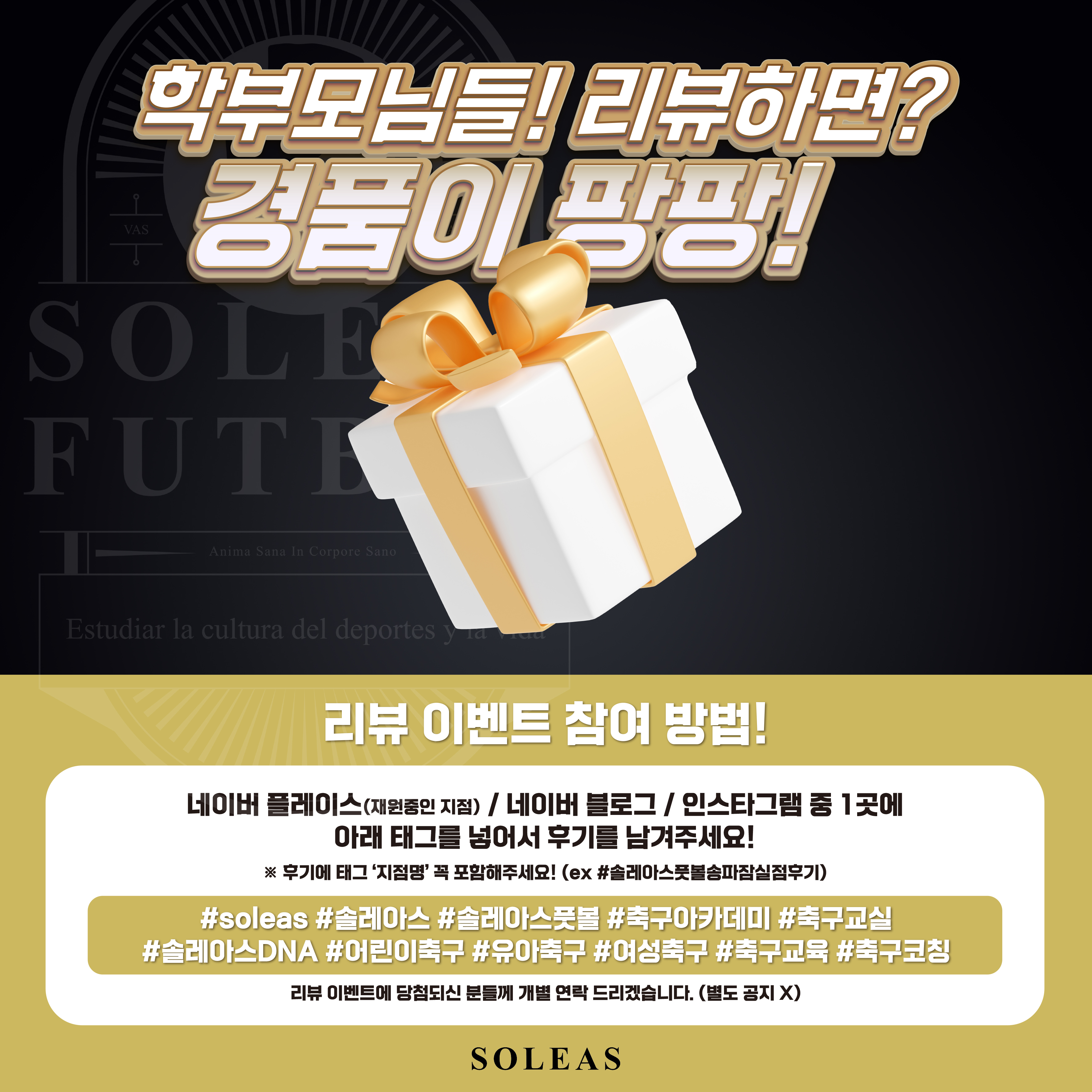 ✅ 참여 방법: 솔레아스 카카오톡 채널 친구 추가 후 댓글로 [지점명/회원명/회원나이/정답] 남기기