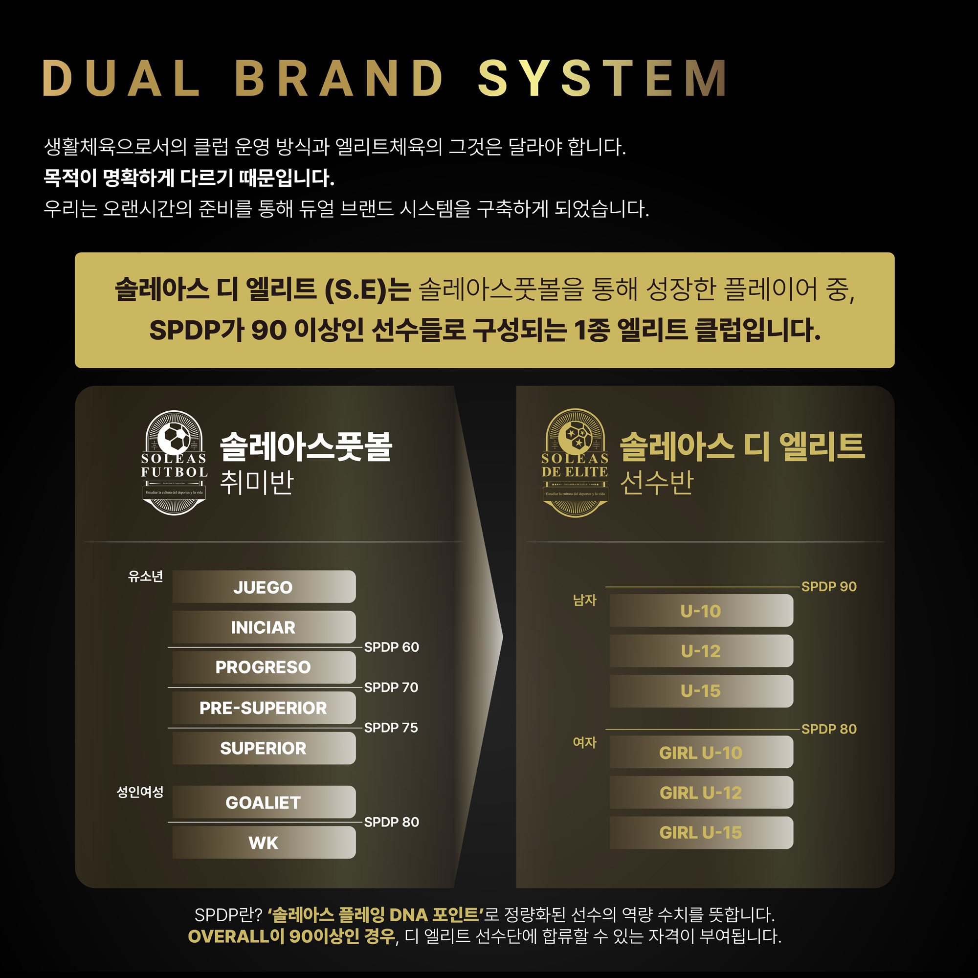 '솔레아스 디 엘리트'는 선수의 미래와 인생을 책임지는 무게감을 가지고, 다음과 같은 명확한 기준과 원칙하에 운영됩니다. |