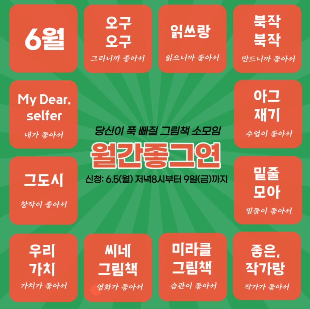 그림책은 시의 언어 같아서 목구멍까지 차올랐던 말들을 꿀꺽 삼키며 글을 썼다면요, 좋그레 지면에는 솔직하게 터놓을 수 있어 시원함을 느꼈습니다. 제 지인에게도 하지 못한 은밀한 이야기를, 그림책을 매개로 여기서 나누게 되니 좋그레 독자들과 훨씬 친해진 느낌이랍니다. 그림책에 대한 사랑과 애정을 늘 듬뿍 보내주셔서 감사합니다.