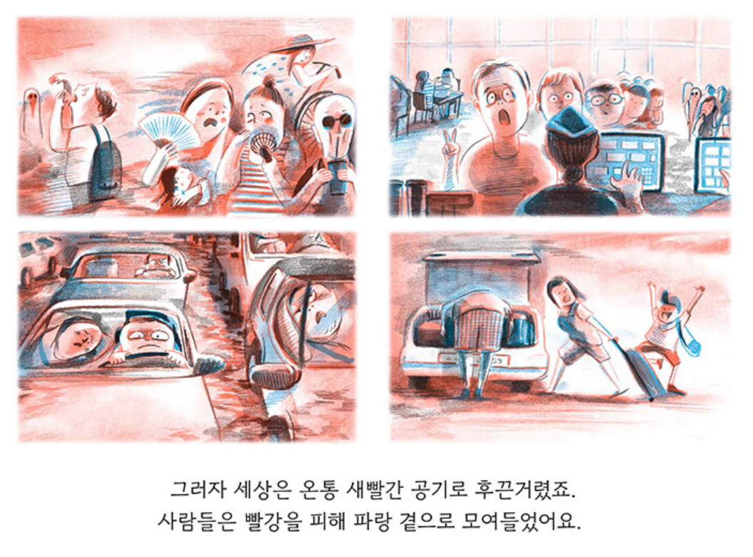 파랑이 사라져 버린 한여름의 빨간 풍경은 블록버스터 재난 영화 같은 느낌도 들었어요. 파랑을 지우고, 몰아내려고 해도 좀처럼 되지 않죠. 원하는 걸 지웠는데도 빨강은 괴롭기만 했어요. 진짜 원하는 것이 무엇인지 어떻게 알 수 있을까요?