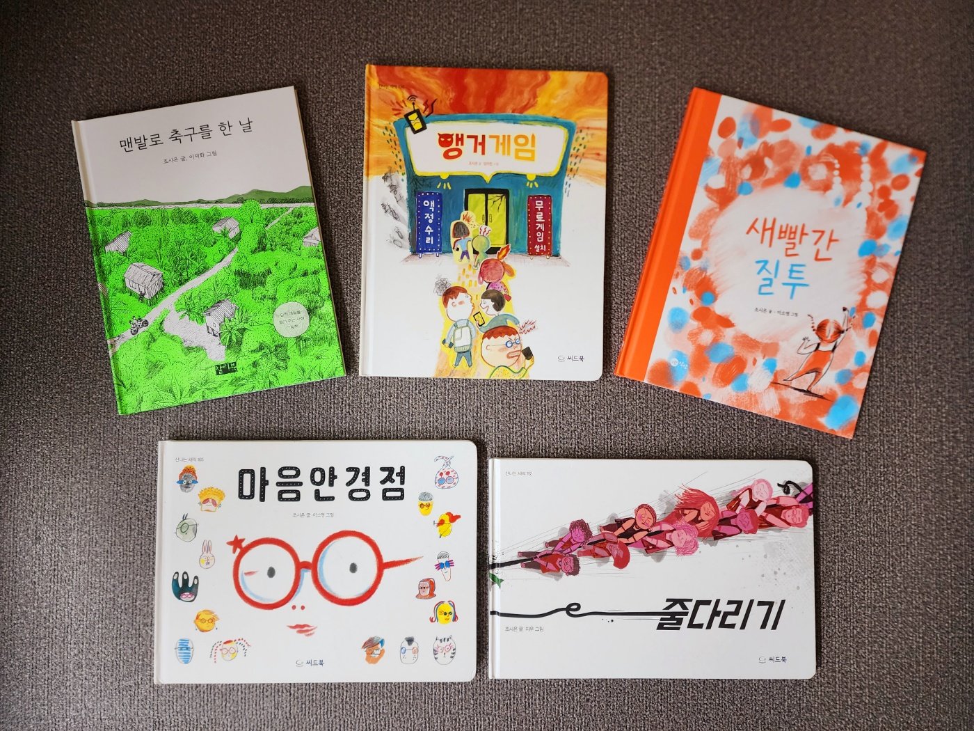 선생님 말씀에 <새빨간 질투>의 마지막 장면이 떠올라요. 빨강이 나무 그늘에 누워 '아 눈부신 파랑! 온몸으로 받아들여 더 빨갛게 익어 갈 테야.' 말하는 장면이요. 빨강이 자기 안을 차근히 들여다보고 '파랑처럼 눈부신 존재가 되고 싶다'는 걸 깨달았기에 가능한 일일 텐데요. 시온샘의 그림책을 읽으며 자기 자신을 있는 그대로 바라보는 것이 얼마나 강력한 힘을 지니고 있는지를 느껴요. <마음안경점>에서도 자기의 모습을 있는 그대로 바라보기, <앵거게임>에서도 화가 난 자신을 인정해주기의 중요성에 대해서 말하고 있죠. 나 스스로 못나 보이고, 부족해 보일 때 무엇으로 다시 일어설 수 있을까요?