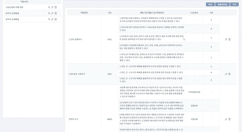 어떤 유형의 역량항목들이 설정 가능할까요😃? S-GATE에서는 BARS / BOS / 일반 형태의 역량항목을 설정 할 수 있습니다.