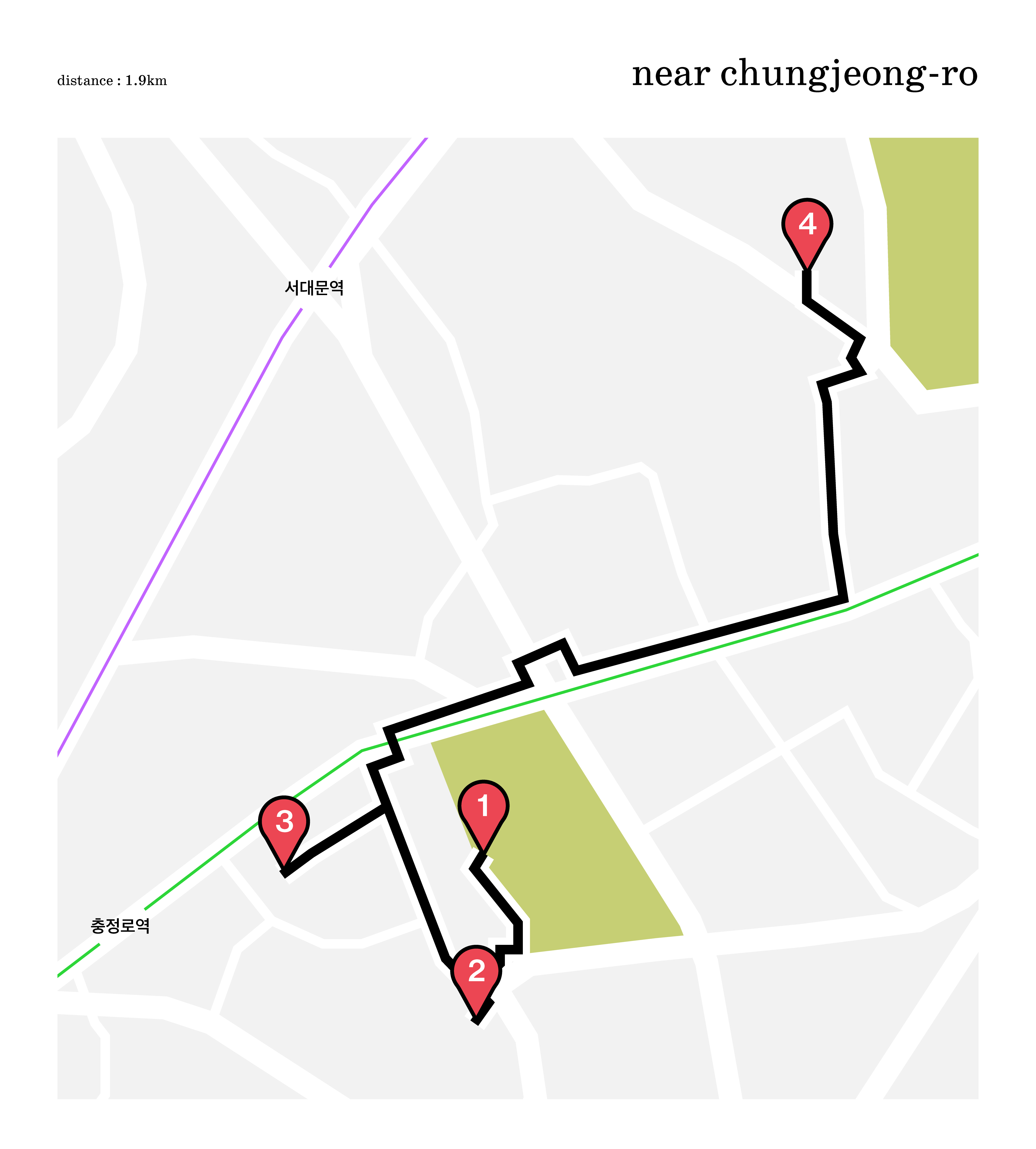 오늘의 걸음 코스는 충정로역 부근입니다.