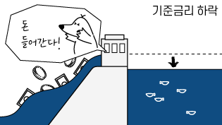 2년 전 코로나19가 확산하면서 각국 정부는 경기를 살리기 위해 다양한 정책을 사용했습니다. 이 중에 중앙은행의 기준금리 인하는 가뭄이 심할 때 댐에 저장된 물을 논에 방류하는 것으로 비유되곤 합니다. 댐의 높이(기준금리)를 낮추면 물(돈)이 논(시장)에 흘러 들어가면서 가뭄을 해소하는 것이죠. |