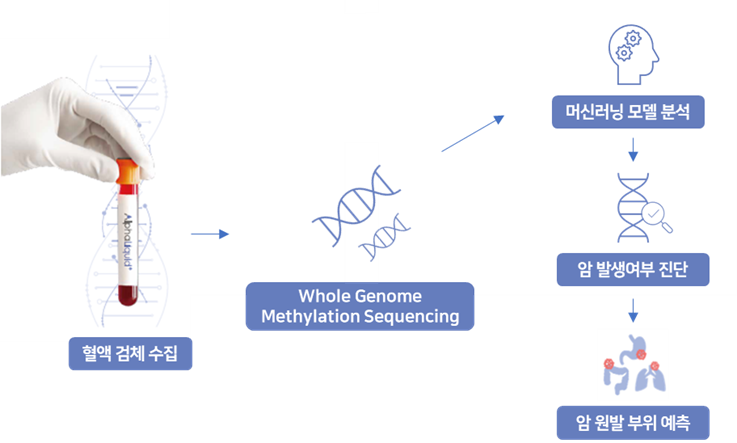 AlphaLiquidยฎ Screening์ ๋จธ์ ๋ฌ๋ ๋ชจ๋ธ ๋ถ์์ ํตํด ํ์ก ๋ด์ ์กด์ฌํ๋ cfDNA์ ๋ฉํธ๋ ์ด์