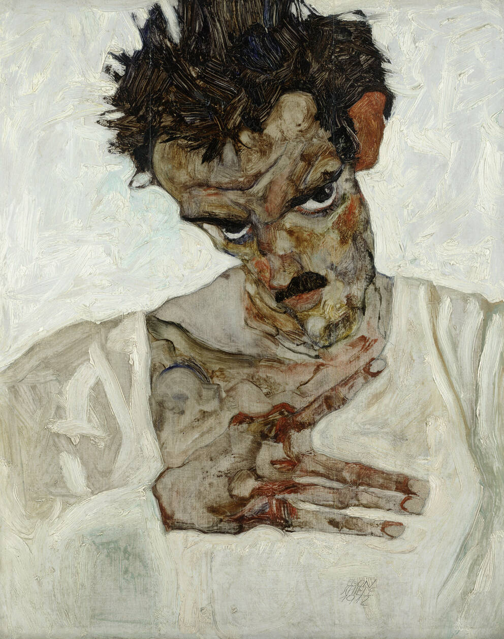 에곤 실레의 '고개를 숙인 자화상'(1912). 사진 레오폴트미술관 제공 |