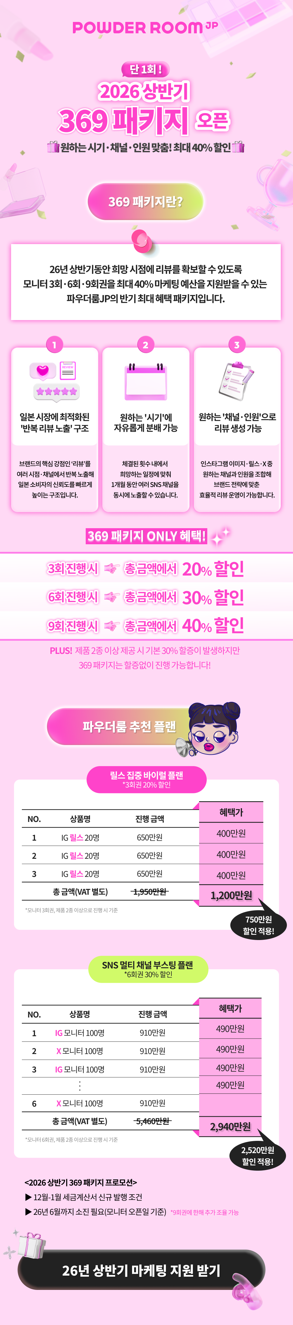 파우더룸 글로벌사업팀 / ad_jp@powderroom.co.kr (06051) 서울시 강남구 언주로 135길 28 파우더룸수신거부 Unsubscribe
