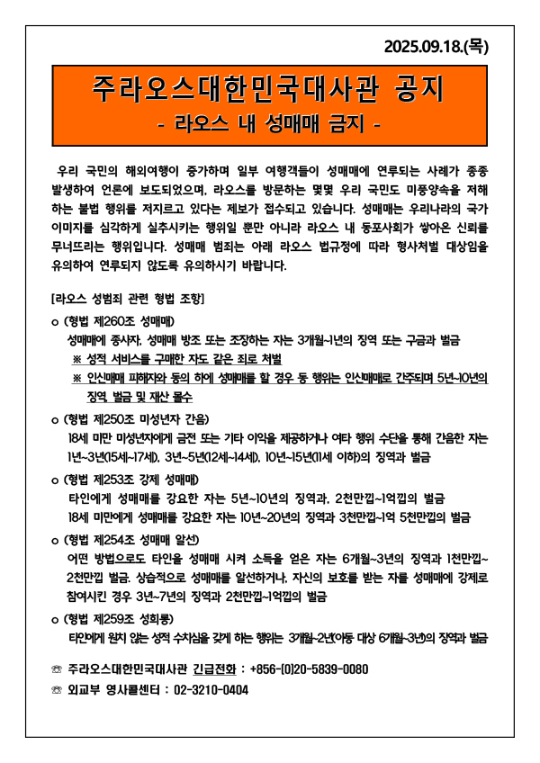 ๋๋ค.โ (์ฃผ๋ผ์ค์ค ๋ํ๋ฏผ๊ตญ ๋์ฌ๊ด ์ง๋ํด 9์18์ผ ๊ณต์ง)