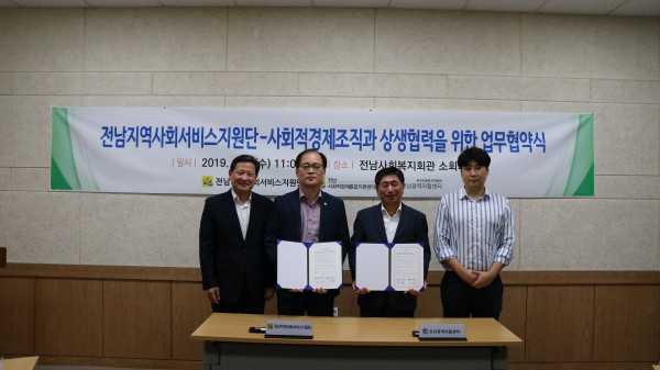 ![]() 전남광역자활센터-전남지역사회서비스지원단과 상생협력을 위한 업무협약 추진 전남광역자활센터(김삼용 센터장)는 4일 오전 전남사회복지회관 3층 소회의실에서 전남지역사회서비스지원단(김정섭 단장)과 상호 교류협력을 통한 공동발전을 위해 업무협약을 체결하였다. ![]() 2019 영·호남 자활 최고경영자 과정 2019년 영·호남 자활 최고경영자 과정 2019. 9. 5.(목)~6.(금) 2일간 전남 여수에서 진행되었다. 총 1박 2일 6시간 교육을 통해 자활센터 최고경영자의 리더십 역량 강화와 복지환경변화에 따르는 자활센터 최고경영자의 대응전략에 대한 주제를 가지고 교육을 진행하였다.