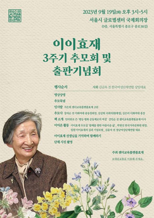 이이효재 선생님의 삶을 기억하는 사람들이 모여 선생님이 묵묵히 걸어 오셨던 길을 되짚으며 이 시대에서 우리가 가야 할 길을 함께 가고자 합니다. 이이효재 3주기 추모회 및 출판기념회에 초대합니다.