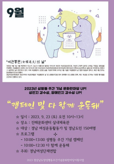 2023 성평등주간기념 문화한마당 'UP!' '성인지 감수성, 장애인지 감수성 UP!' "다 함께 운동해"