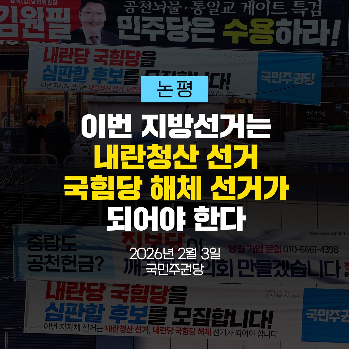 [논평] 이번 지방선거는 내란청산 선거, 국힘당 해체 선거가 되어야 한다