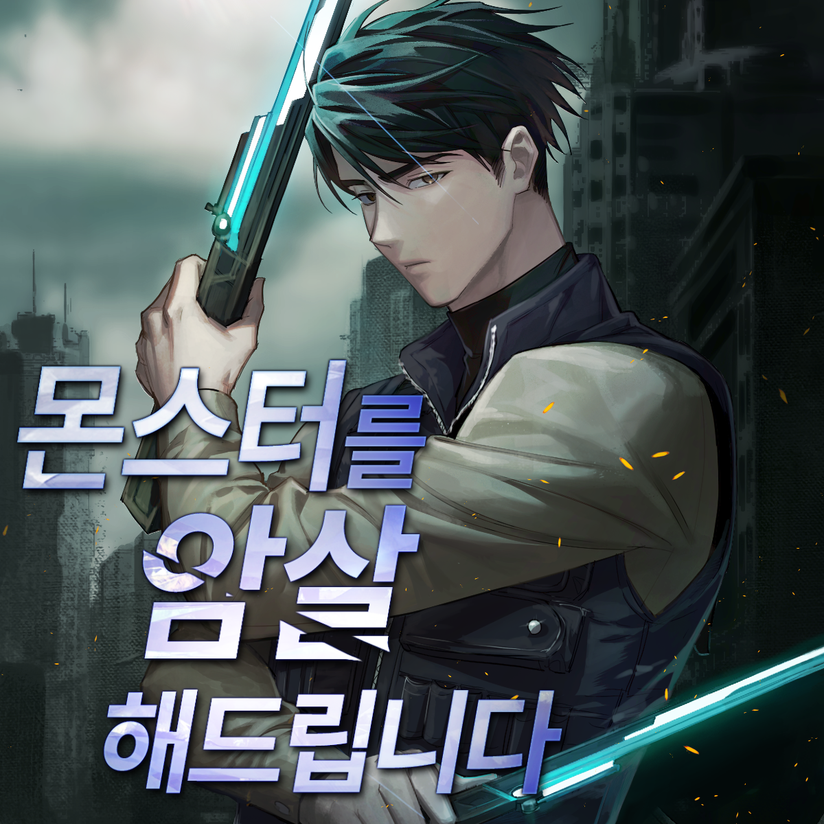 역동적인 전투 장면입니다. 자체적으로 평가를 하자면, 몬스터를 암살해드립니다는 작품 분위기가 다소 무겁습니다. 주인공도 진중하기 그지없고요. 전체적으로 정적인 분위기라, 전투 장면이 돋보일 것 같네요.