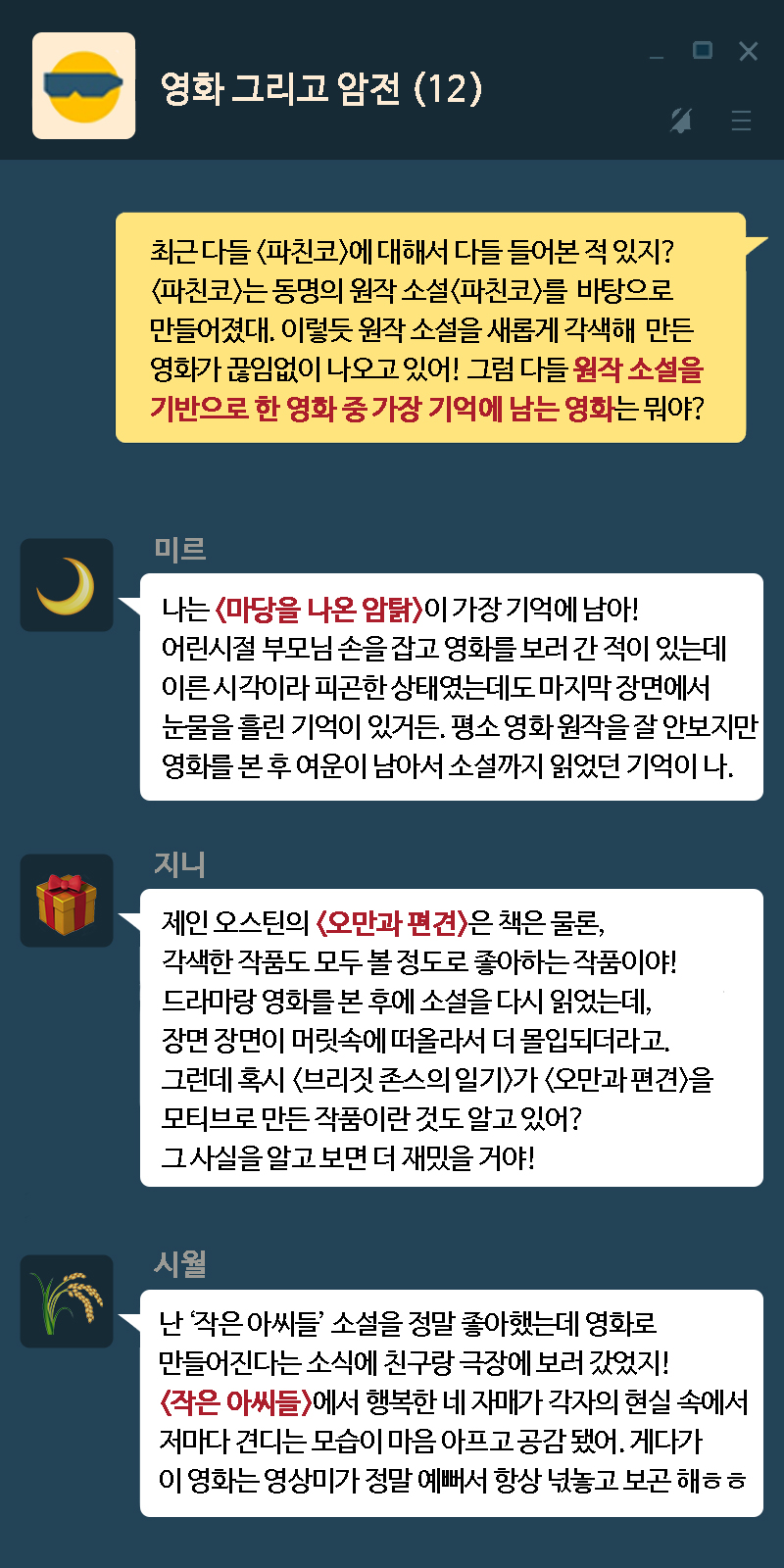 ๋ฃฐ๋ฃจ ์์ ์คํ๋ฅผ ๋ด์ ์ํ์ด์ ๊ฐ์กฑ์ ๋ํ ๋ฐ์คํ ์ฌ๋์ ๋๋ ์ ์๋ ์ํ์์! ์ํ ์์์๋ ํ ๋จธ๋์ ์ฃฝ์์ ๋๊ณ ์๋ ค์ผ ํ ์ง ์๋๋ฉด ์จ๊ฒจ์ผ ํ๋ ์ง๋ก ๊ฐ๋ฑํ๋๋ฐ์. ์ด์ฉ๋ฉด ์ฐ๋ฆฌ ์ผ์ ์์์ ๊ฒช์ ์๋ ์๋ ์ํฉ์ด๊ธฐ์ ์ํ๋ฅผ ๋ณด๋ค๊ฐ ๋ง์ผ โ๋์๋ค๋ฉด?โ์ด๋ผ๋ ๊ฐ์ ์ ํ๋ฉด์, ์๋ก ๋ค๋ฅธ ์๊ฒฌ ์ฐจ์ด๋ฅผ ๊ฐ์ง ๊ฐ์กฑ๋ค์ ์ํฉ์ ๋์ฑ ์ด์