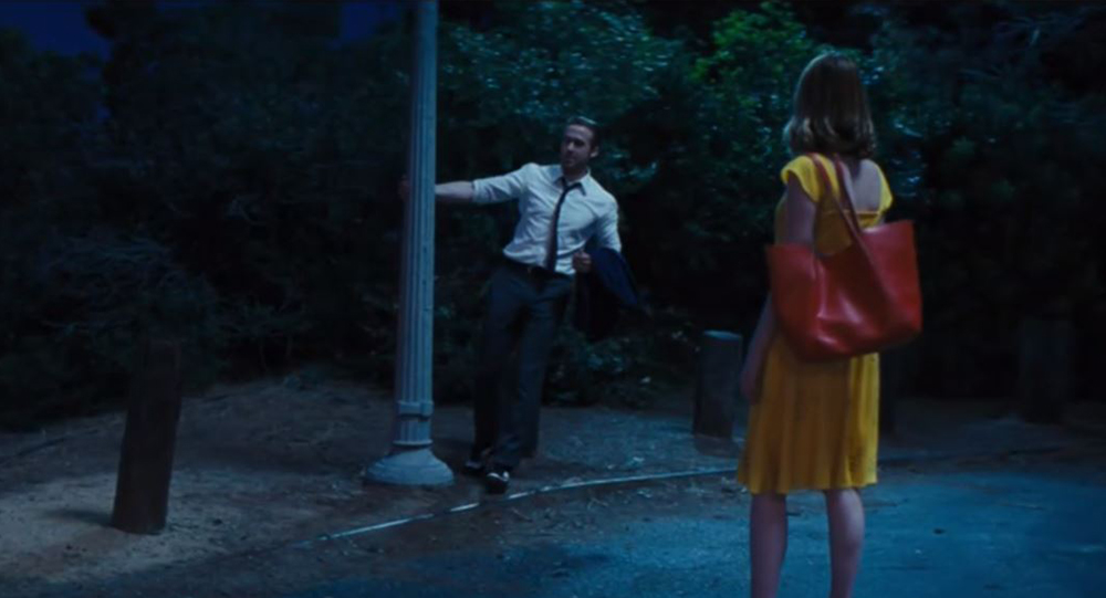 <๋ผ๋ผ๋๋>๋ LA ์ธ๊ณฝ ๋๋ก ์์์ ํผ์ณ์ง๋ ์คํ๋ ๋์ค ์ํ์ค๋ถํฐ ๊ด๊ฐ์ ์๋ํฉ๋๋ค. ์ด ์ฅ๋ฉด์์๋ ์๋ง์ ๋์๋ค์ด ๋งค์ฐ ์ญ๋์ ์ธ ์นผ๊ตฐ๋ฌด๋ฅผ ๋ณด์ฌ ์ฃผ๋๋ฐ, ์ด๊ฒ์ <์ถค์ถ๋ ๋๋ด์(1949)>๋ฅผ ๊ฑฐ์ณ <์จ์คํธ ์ฌ์ด๋ ์คํ ๋ฆฌ(1961)>์์ ์ ์ ์ ์ฌ๋๋ ์ ๋กฌ ๋ก๋น์ค์ ์๋ฌด๋ฅผ ์ฐ์์ํต๋๋ค. <๋ผ๋ผ๋๋>์์ ์ญ๋์ ์ธ ๋์๋ฅผ ๋ฐ๋ผ ๋ง์น ์ถค์ถ๋ฏ ์์ง์ด๋ ์นด๋ฉ๋ผ ์ฐ์ถ์ด ๋ง๋ ์์ฒญ๋ ์๋์ง ํจ๊ณผ๋ฅผ ์ผ์ผ์ผฐ์ด์.