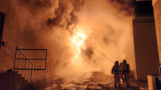 ํ์๊ด ๋ฐ์ ์ ์๋์ง์ ์ฅ์ฅ์น(ESS)์์ ํ์ฌ๊ฐ ์๋ฐ๋ผ ๋ฐ์ํ๊ณ ์๋ค. 27์ผ ์คํ 4์ 28๋ถ์ฏค ์ ๋จ ์์๊ตฐ ๊ธ์ ๋ฉด ํ ํ์๊ด ๋ฐ์ ์์ ESS ๋ณด๊ด ์์ค์์ ๋ถ์ด ๋ฌ๋ค. ์๋ฐฉ๋น๊ตญ์ โํ์ฌ๊น์ง ์ธ๋ช