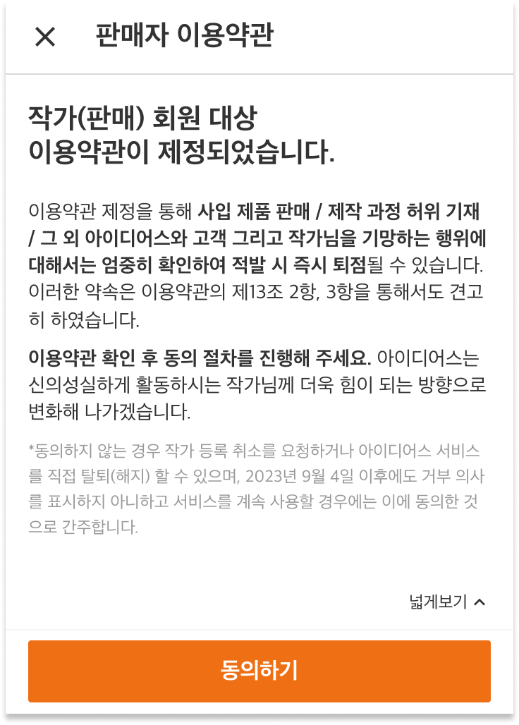 작가앱/웹 > 전체 > 아이디어스 서비스 작가(판매)회원 이용약관