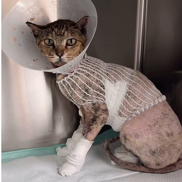 산불 현장에서 가장 걱정을 많이 샀던 고양이는 단연 '사계'였습니다. 사계의 화상은 매우 심했습니다. 최악의 경우, 네 다리를 전부 절단해야할 정도로요. 검사 결과를 본 수의사들은 조심스레 안락사를 권유할 정도로 심각한 상태였죠.