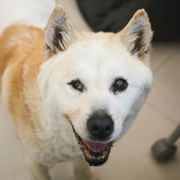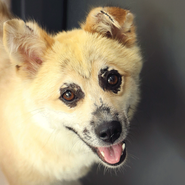 쫑쫑이는 영문도 모른 채 가족과 삶의 자리를 산불로 잃었습니다. 제보로 찾아간 현장엔 모든 것이 전소된 상태였어요. 그러나 쫑쫑이는 씩씩했습니다. 온센터에 입소하자마자 이곳저곳을 누비고, 냄새를 맡고, 낯선 공간을 탐색했어요. 사람의 손길을 겁내지 않고, 폭신한 머리를 내어줍니다. 쫑쫑이의 눈은 여전히 반짝거립니다. 사람을 좋아하는 쫑쫑이의 눈을 바라볼 때면, 늘 활짝 핀 웃음으로 반겨줘요.