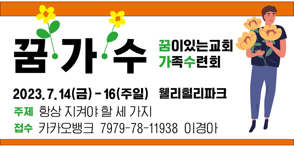 꿈이있는교회 가족수련회(이하 꿈가수)의 사전 접수 안내입니다. 주일날 교회 로비에서도 접수처가 준비되어 있습니다. 미리 아래 계좌로 수련회 참가비를 입금해 주시면 진행을 하는 데 큰 도움이 됩니다. |