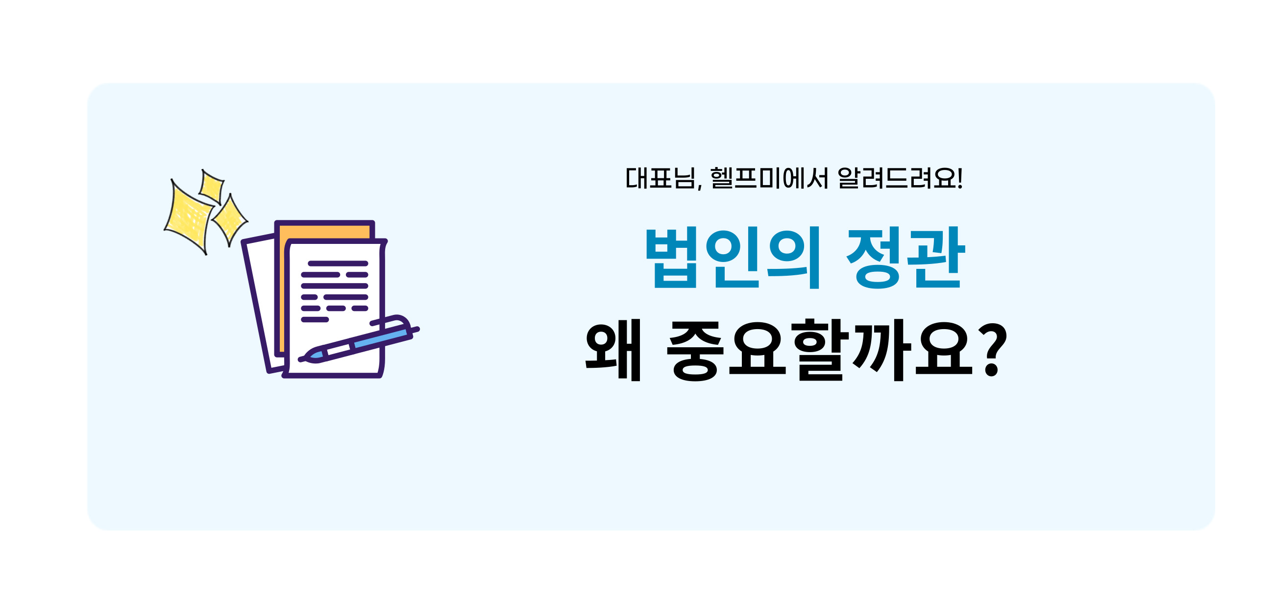 법인의 정관은 효율적인 경영을 도와줍니다. 예를 들어 정관 규정에 '이사 2명, 감사 1명으로 정한다.'는 규정이 있다면 향후 법인이 성장했을 때, 더 많은 이사를 선임하고 싶어도 정관 규정이 걸림돌이 될 수 있겠죠. 이 경우에는 정관에 '이사는 2명 이상, 감사는 1명 이상으로 정한다' 고 규정되어 있으면 임원을 선임할 때 조금 더 수월하게 선임할 수 있을 것입니다. 이 외에도 나중을 대비해 유족보상, 상여금, 중간배당, 주주총회 등에 관한 정관 규정을 현재 상황에 맞게 정비하는 것이 중요합니다. 😀