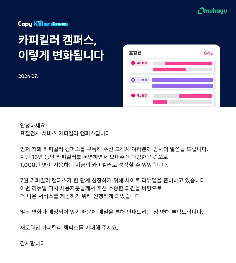 새로워진 카피킬러 캠퍼스를 기대해 주세요.