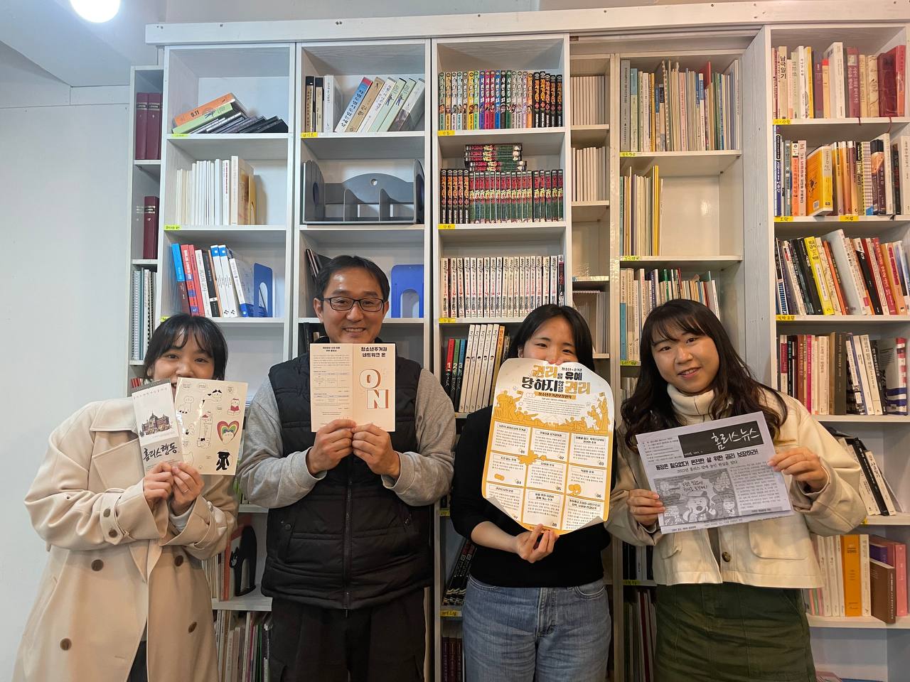 청소년탈시설공부모임 2022년 11월을 시작으로 매월 1회씩 모임을 지속해오고 있습니다. 지난 3월 모임에서는 그동안 함께 읽었던 '시설사회'를 마무리하며 '시설화/시설사회/탈시설운동'에 대한 정의를 내려보며 정리하는 세미 워크숍의 시간을 가졌습니다. 시설사회를 넘어서기 위해서는 돌봄사회를 더 탐구하고 싶어졌어요. 돌봄에 대하여 공부하기 위해 지금은 '래디컬 헬프 : 돌봄과 복지제도의 근본적 전환'을 읽고 있습니다.