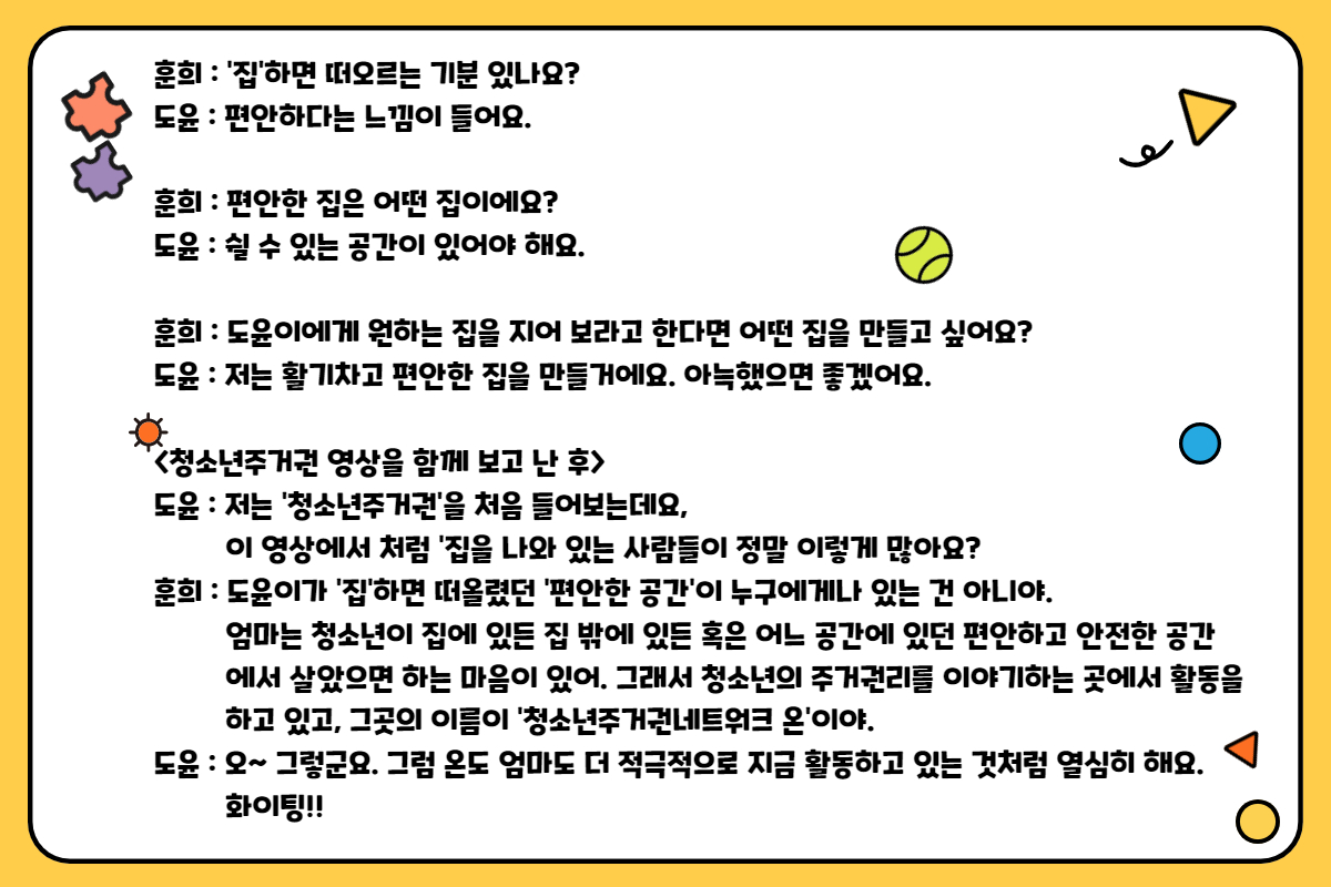 온에는 팀을 나누어 활동을 해가고 있는데요, 올해는 청주넷 온이 앞으로 청소년 주거권 운동을 어떻게 해나가야 하는지 전반적인 그림을 그리고 구상할 수 있는 활동전략과 로드맵을 도출하는 전략기획팀, 그동안 청주넷 온에서 진행했던 수다회들의 이야기를 총 정리하고 엮어내는 활동을 하는 수다회정리팀, 청소년 아웃리치 활동을 통해 주거위기 상황을 포착하고 청소년주거권리 인식을 높이는 컨텐츠를 만들어내는 캠페인팀, 청소년당사자활동가와 함께 각종 다양한 강의.토론회.기자회견 등 청소년주거권 이야기가 필요한 곳에서 교육활동을 하는 교육팀으로 구성하여 활동하고 있습니다. 3~4월에는 팀을 구성하고, 각 팀에서 하려고 하는 사업을 기획하고 준비하는 시간을 가졌어요. 앞으로의 활동을 기대해주세요~!