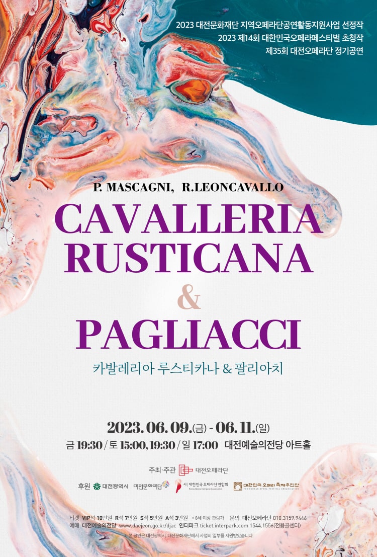 대전오페라단은 <카발레리아 루스티카나>와 <팔리아치>로 대한민국오페라페스티벌에 참가합니다. 페스티벌 참가작이지만 오페라단의 정기공연으로 거점 도시인 대전 관객들과 만나게 되어 페스티벌과는 타이틀만 공유하는 형식인데요, 전막 오페라의 투어 공연이 현실적으로 쉽지 않긴 하지만 이런 페스티벌에서라도 지역 거점 단체가 서울에서 공연하고, 또 서울 공연이 지역 관객들과 만날 수 있는 교류가 이어진다면 페스티벌의 의미가 더욱 빛날 것 같습니다.