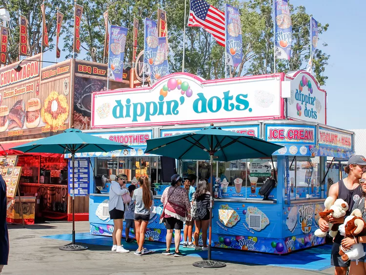 아이스크림을 저온물리학자인 커트 존스Curt Jones 가 액체질소를 이용한 연구를 하다가 우연히 발명합니다. 1998년 디핀다트Dippin' Dots 를 설립하고 '미래 아이스크림'이란 슬로건으로 유원지를 중심으로 판매하며 인기를 얻죠.