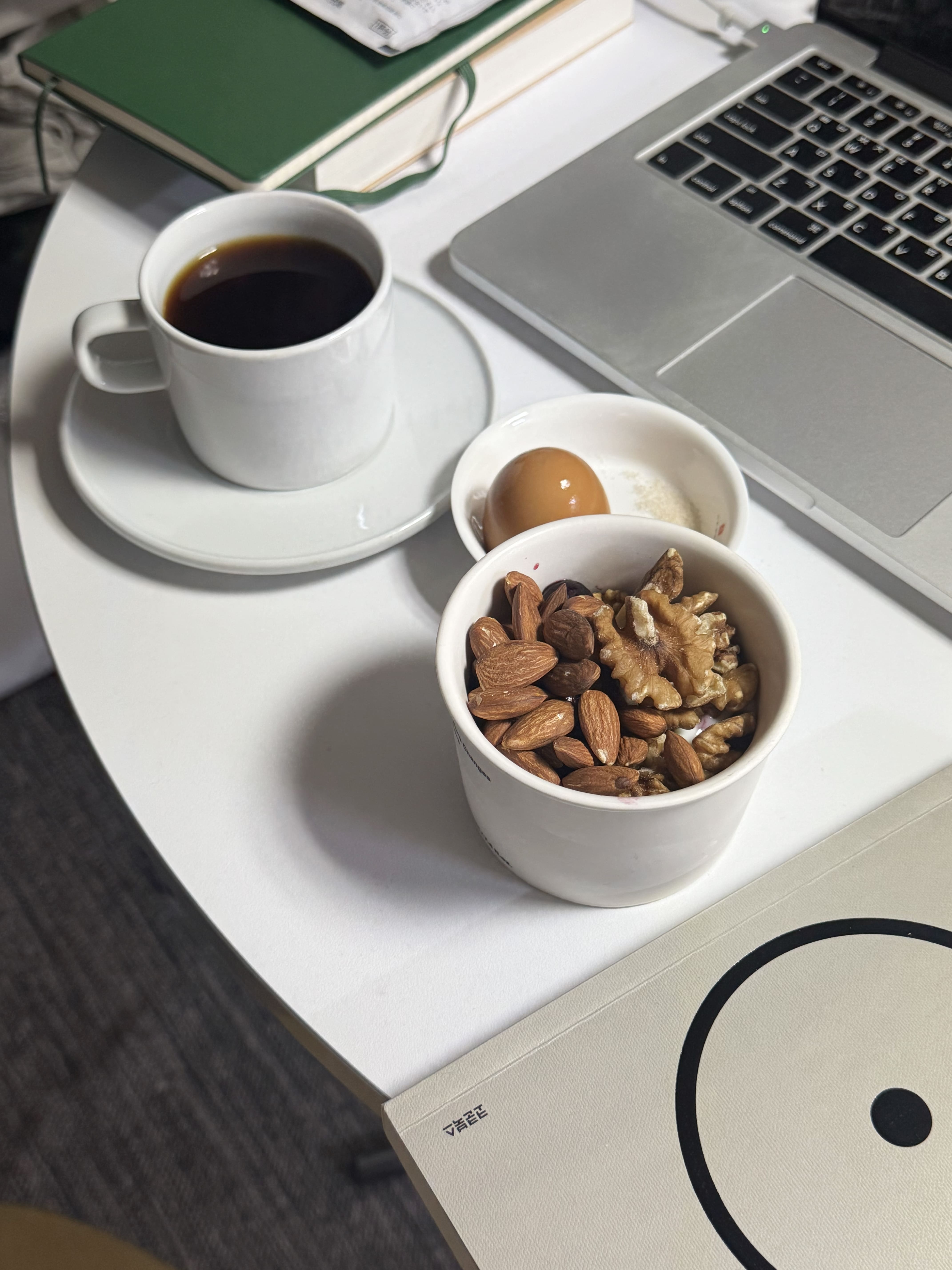 겨울에는 아침에 눈을 떠도 영 상쾌하지 않았는데, 요즘은 기분 좋게 일어난다. 주중에 누릴 수 있는 여유는 오히려 아침에 있다. 그래서 아침에는 일부러 부지런히 움직이며 여유를 만든다. 내가 정해 둔 루틴은 이렇다. 기상 후 스트레칭, 출근 준비, 커피 내리기, 간단한 아침(요거트+블루베리+견과류 & 구운 달걀 2개), 그리고 독서나 언어 공부. 원두를 고르는 재미와 생산적인 활동 속에서 얻는 여유가 하루를 긍정적으로 시작하게 해준다.
