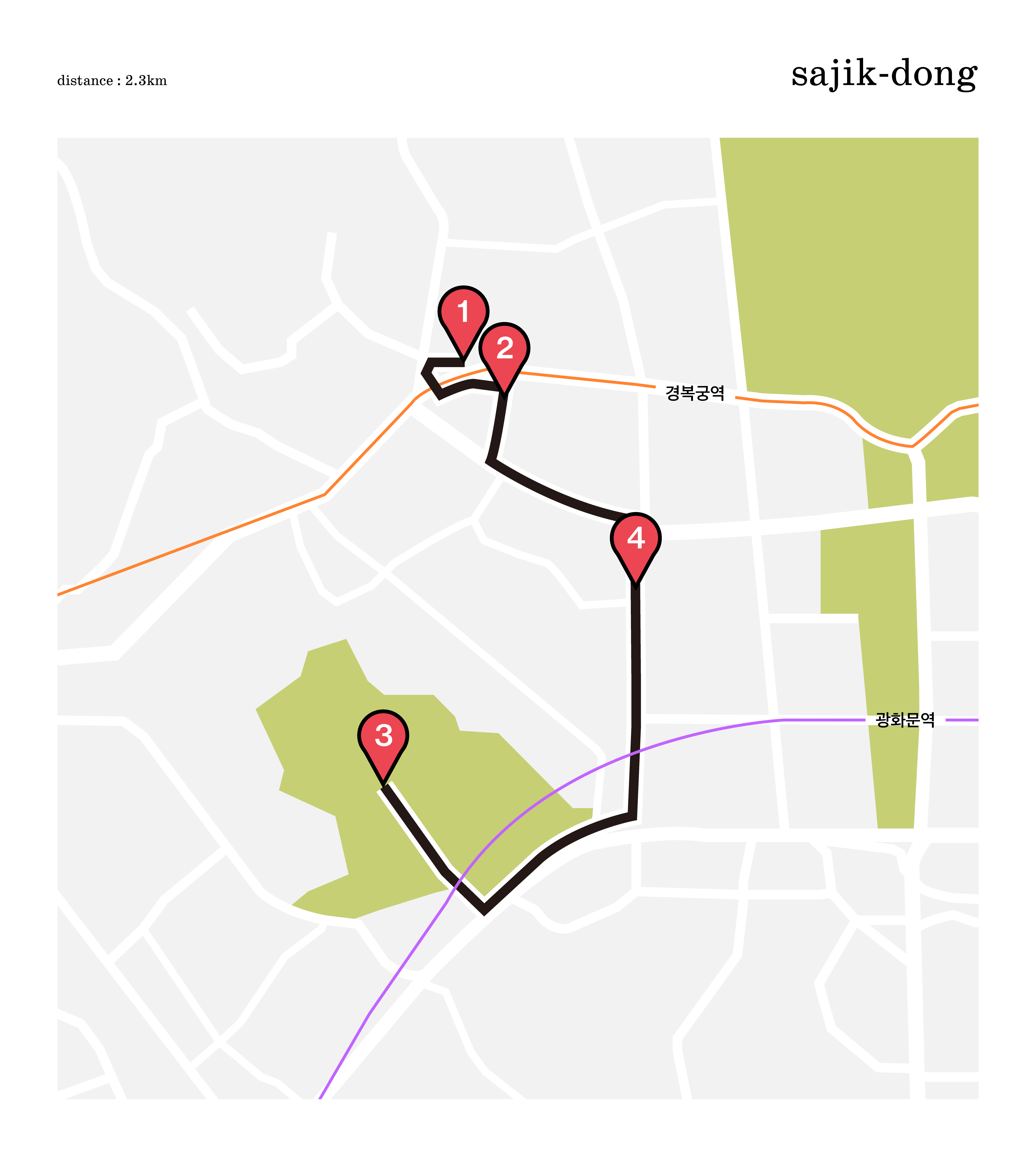 오늘의 걸음 코스는 사직동입니다.