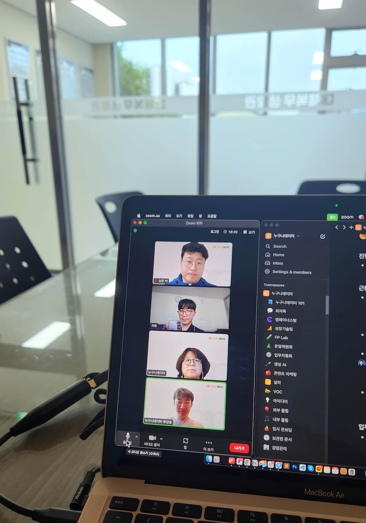 교도소 생활관 안에서 누구나데이터 동료들과 zoom 회의하는 모습. |