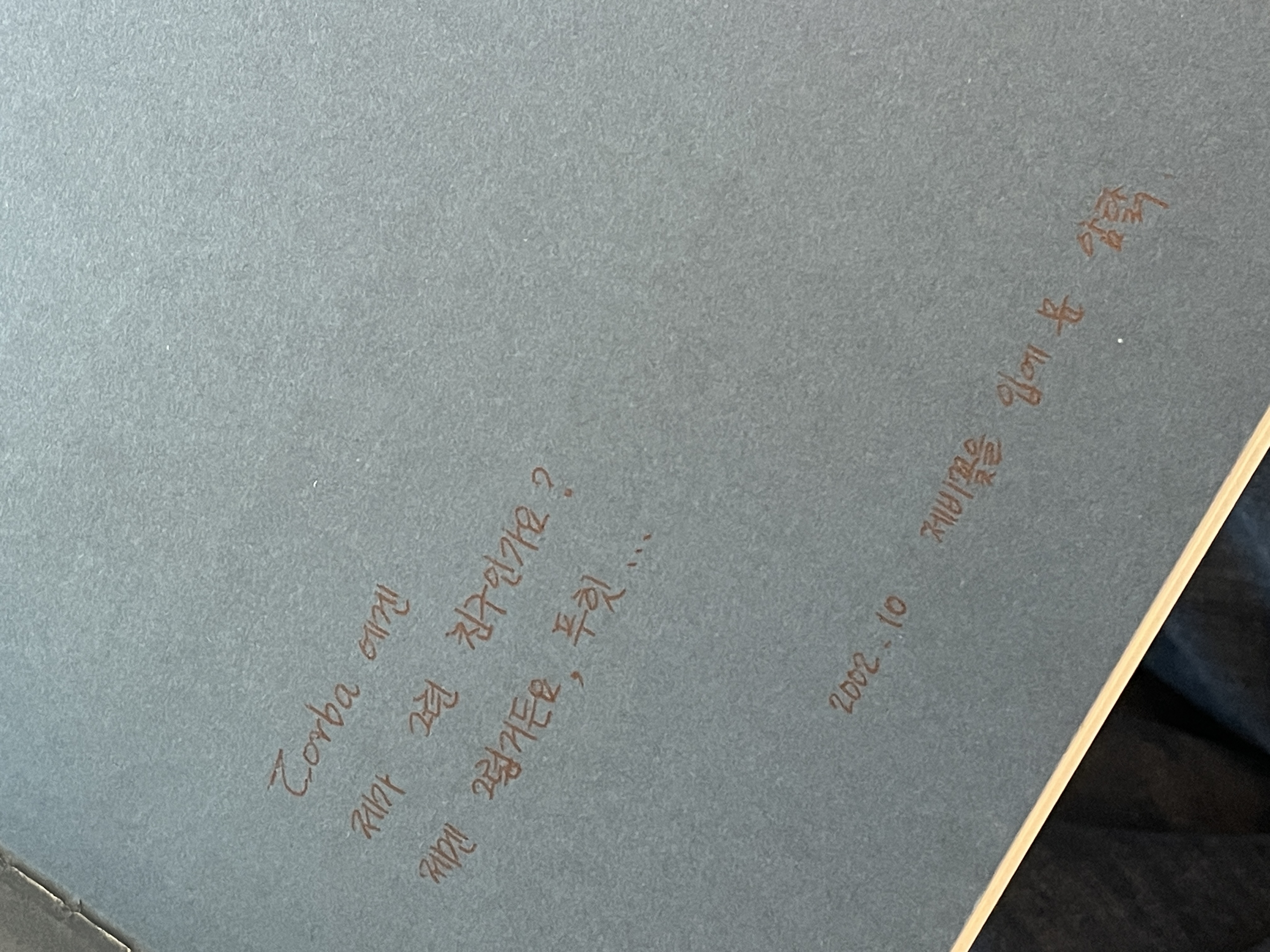 곧장 2,000원을 주고 책을 샀습니다. 제가 또 이런 흔적에 사족을 못 쓰거든요. 2002년 10월에 썸 타고 있었을 조르바 씨와 암탉 씨가 누구인지는 다시 태어나도 모를 일이지만, 조르바 씨에게 암탉 씨가 어떤 이성 친구였을지 멋대로 상상해 보고 싶었어요. 설렘을 품은 채 책을 천천히 읽었습니다.