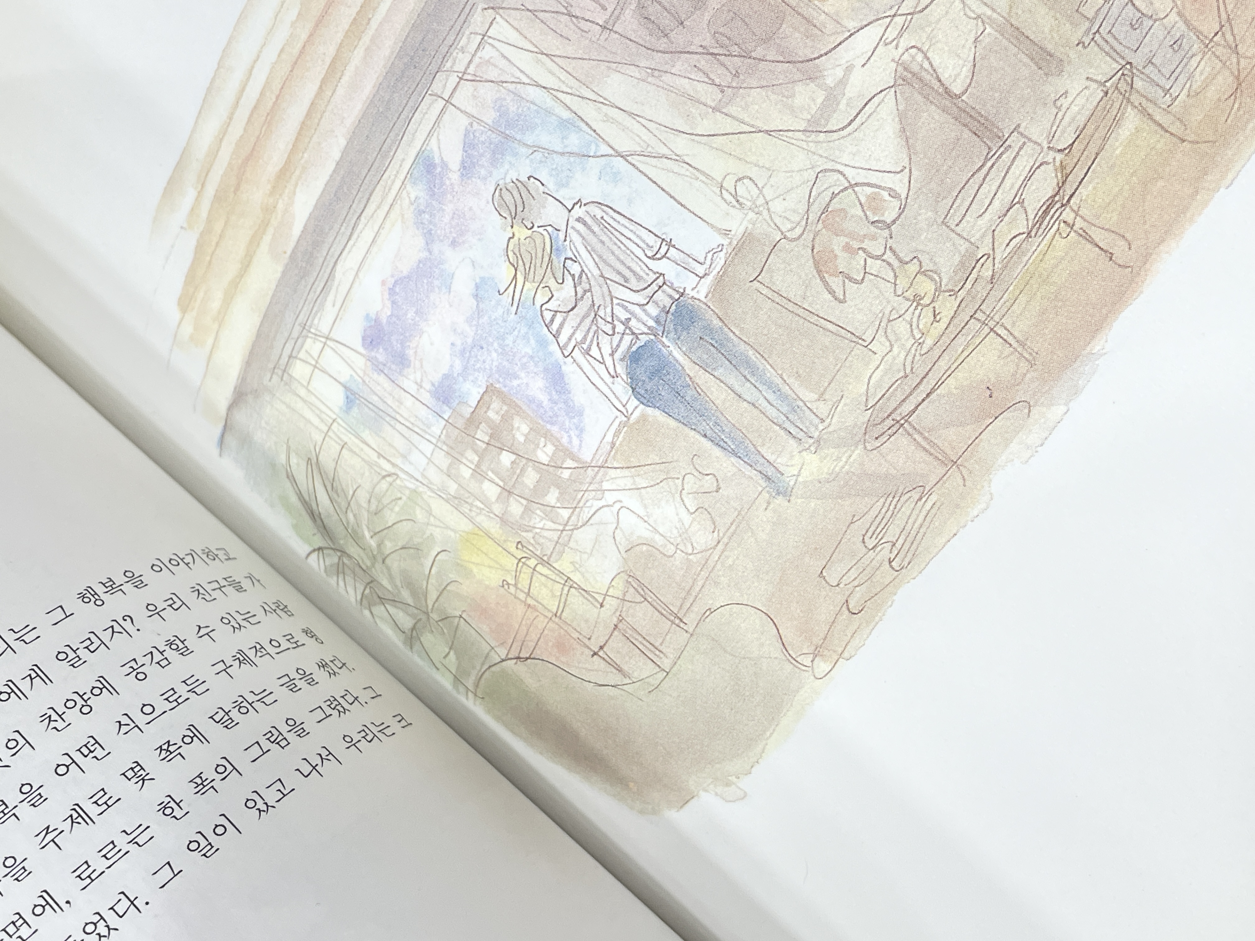 이 책은 프랑스에선 1991년에 출간된 책으로, 오른쪽 페이지에는 상뻬의 그림이, 왼쪽 페이지에는 그림을 바라보고 해석한 그의 글이 나란히 40편씩 수록되어 있어요. 상뻬의 그림을 보면 기분 좋은 수채화의 색감과 위트 넘치는 드로잉에 절로 미소가 지어집니다. 당대의 파리 거리와 그 거리를 자유롭게 거닐었을 사람들을 상상하게 되고요. 한데 그림을 보고서 글을 읽으니 이런 생각이 절로 들었습니다. ‘90년대 파리 사람들도 참 복잡하고 음흉하고 찌질하고 쓸쓸했겠구나. 지금의 우리처럼.’